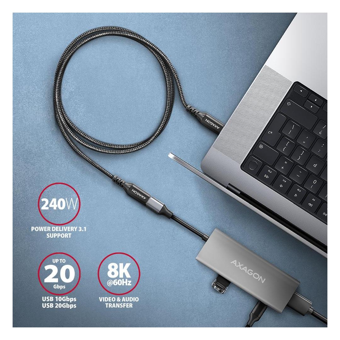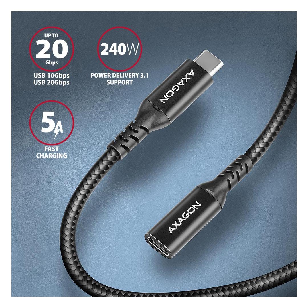 Extension USB 20Gbps cable length 0.5 m. PD 240W, 5A, 8K HD video. Black braided.