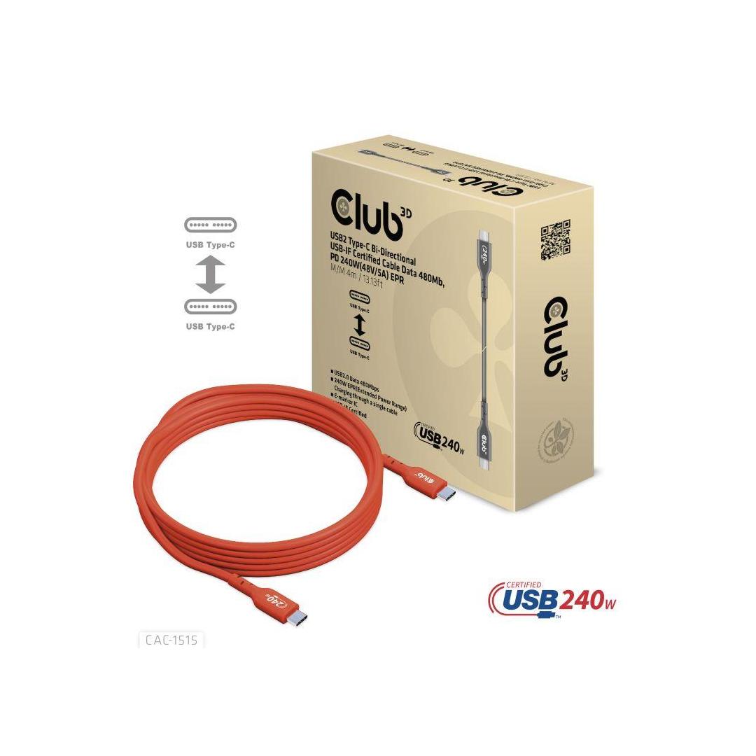 CABLE USB-C TO USB-C 4M/M/M CAC-1515 CLUB3D