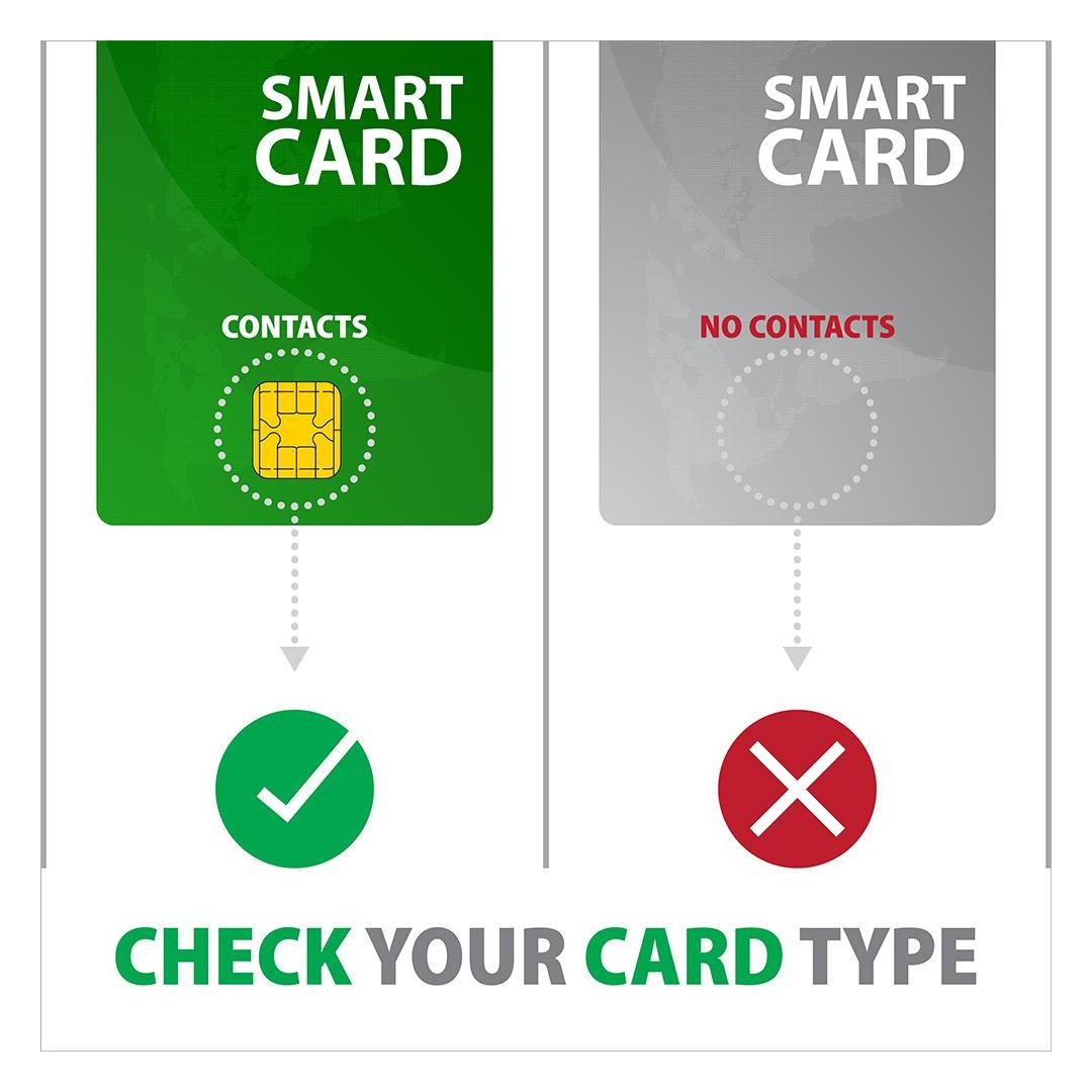 * Note: The reader only supports contact cards that have visible contacts on the surface. The card without contacts is therefore RFID and cannot be used in the reader.