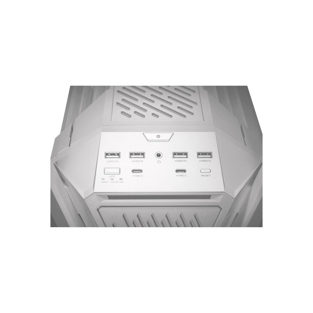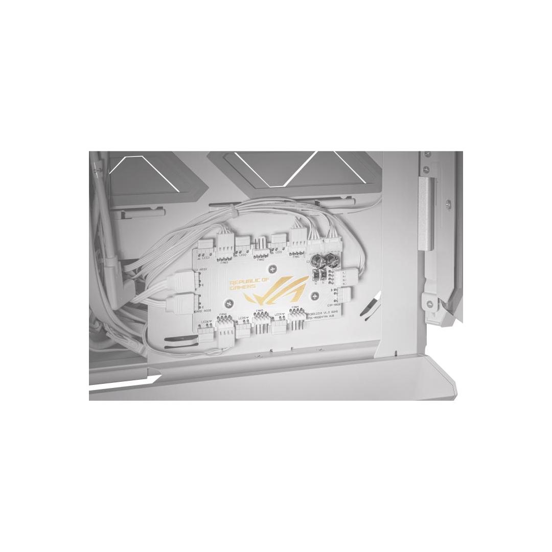 ROG Hyperion GR701 E-ATX computer case, 420 mm dual radiator support, four 140 mm fans, metal GPU holder, component storage, ARGB fan hub, 60W fast charging.