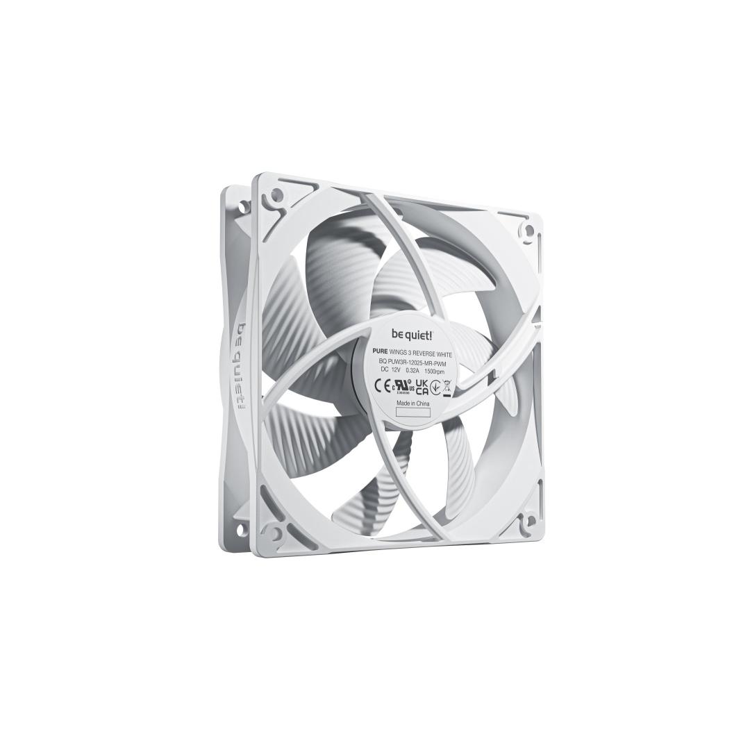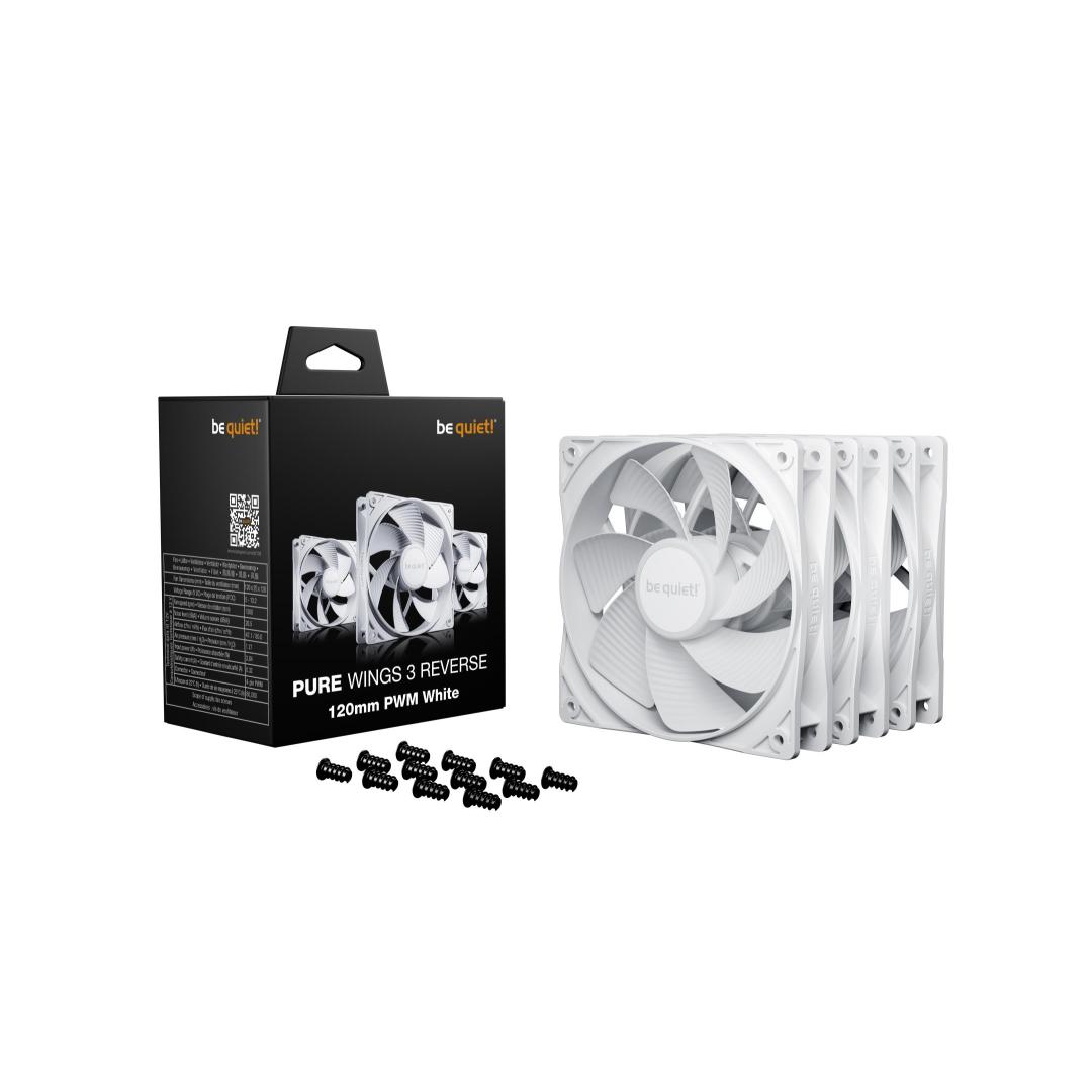 With low minimum rpm and reversed fan blades, the Pure Wings 3 120mm PWM Reverse White Triple Pack is the perfect choice for side or bottom air intakes. The fan offers outstanding reliability and makes for a long-lasting, companion for your gaming system.