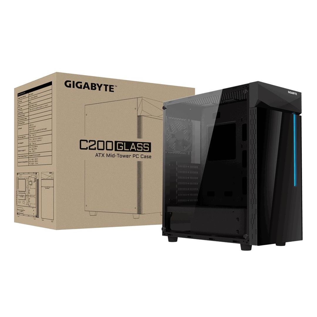 Case GIGABYTE C200 GLASS MidiTower Not included ATX MicroATX MiniITX Colour Black GB-C200G