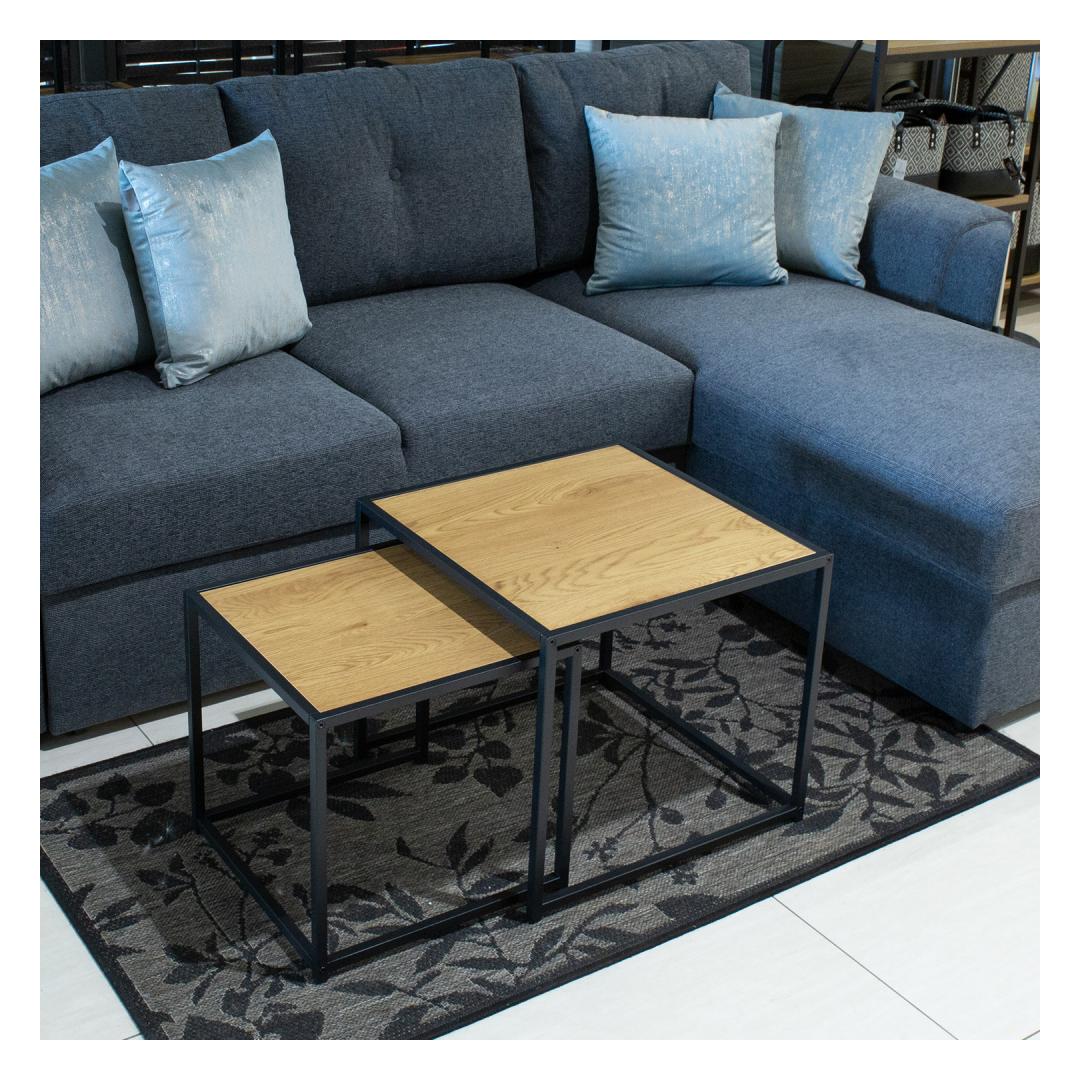 Komplektis kaks lauda: 50x50xH45cm/40x40xH40cm. Lauaplaat: MDF/melamiin, värv: metsik tamm, raam: must metall.