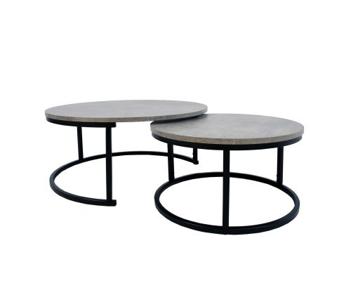Diivanilaud BRITU 2tk komplektis, hall. Lauaplaat on betooni meenutava dekooriga ning valmistatud 18mm paksusest MDF plaadist. Laua raam ja jalad on valmistatud metallist ning kaetud musta pulbervärviga. Laudade mõõdud on D80xH35cm, D60xH32cm.
