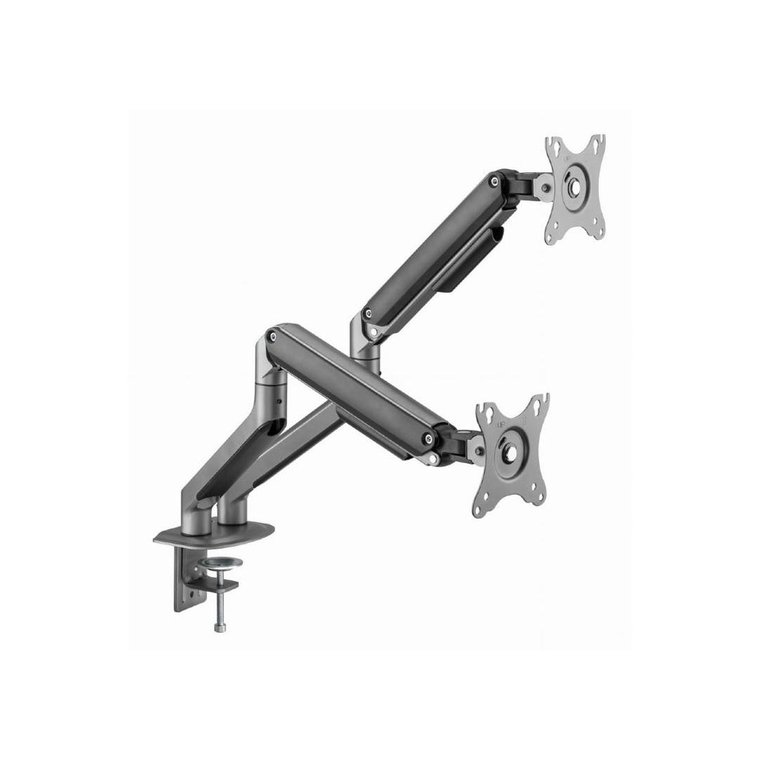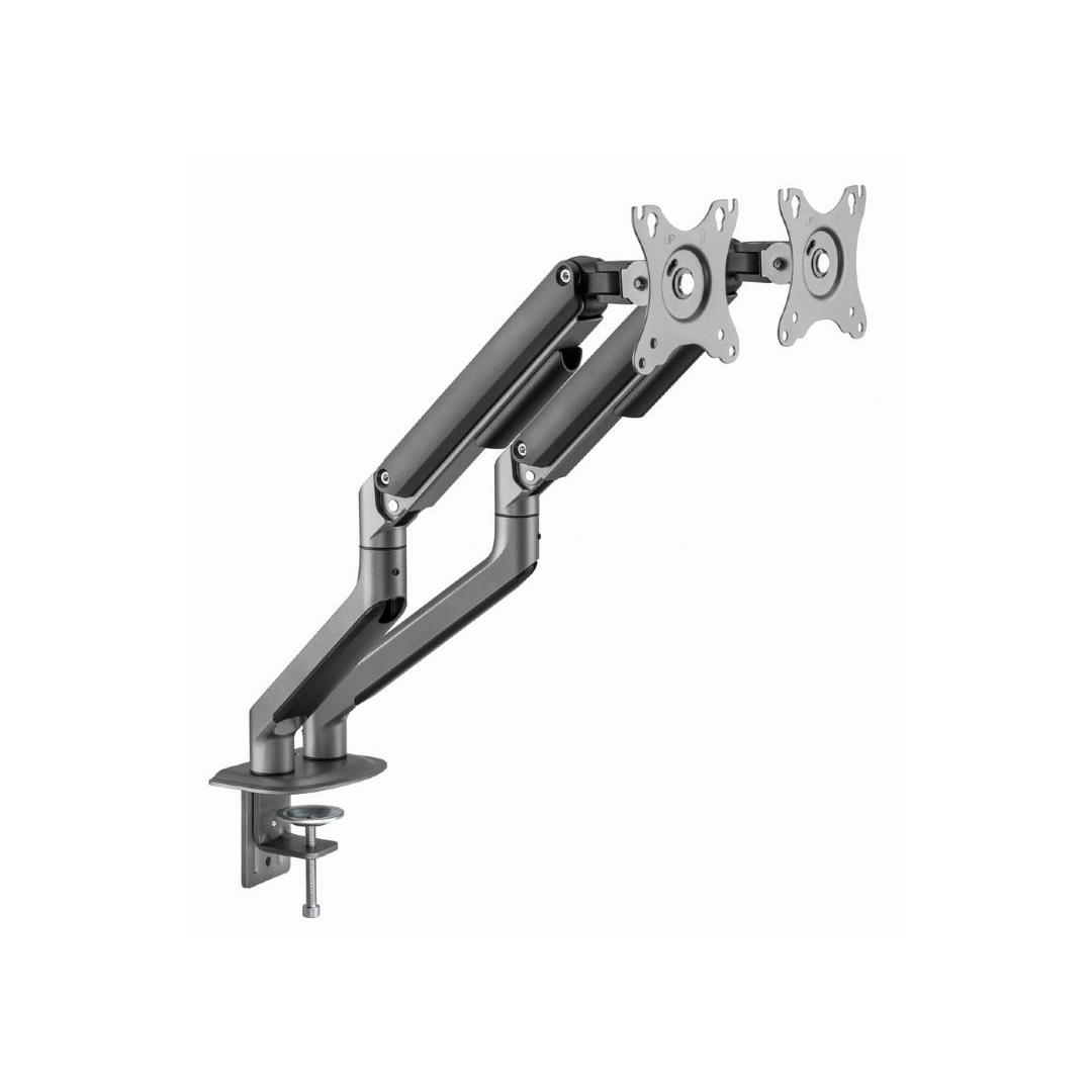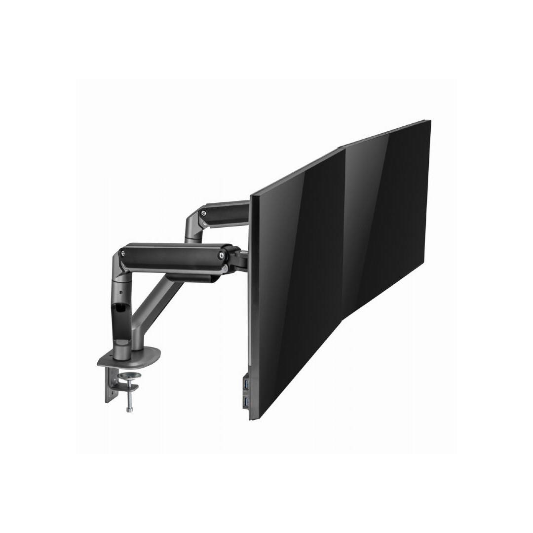 Arms rotate, extend and retract, tilt to change reading angles, and allow to rotate displays from landscape-to-portrait mode, etc