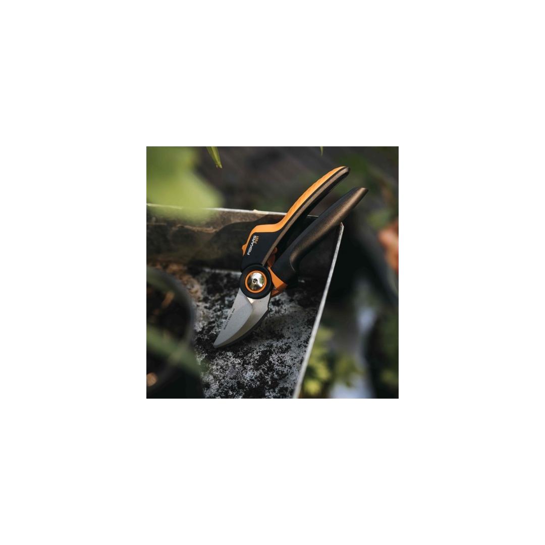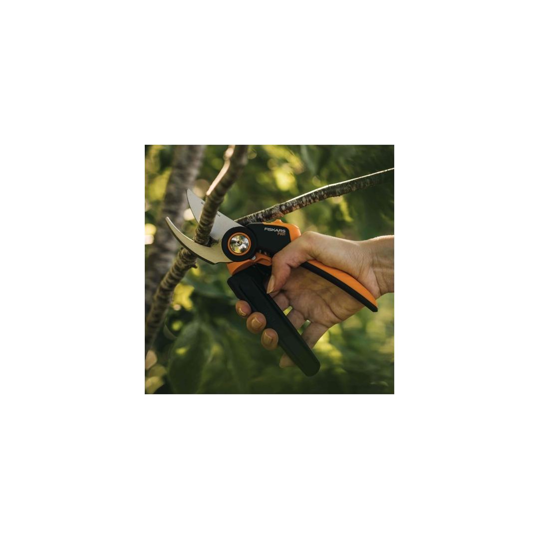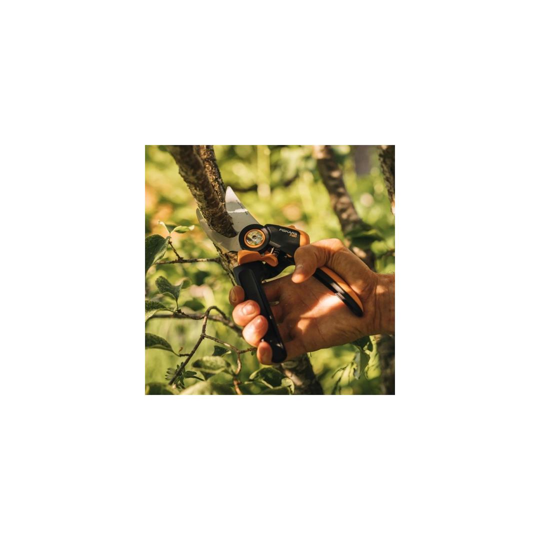 This ergonomic pruner features PowerGear™ technology that maximizes leverage where you need it most, giving you 3x more cutting power through tough, thick stems and branches. A fully hardened, precision-ground blade stays sharp longer, while a low-friction blade coating resists rust and allows for smoother, easier cuts.