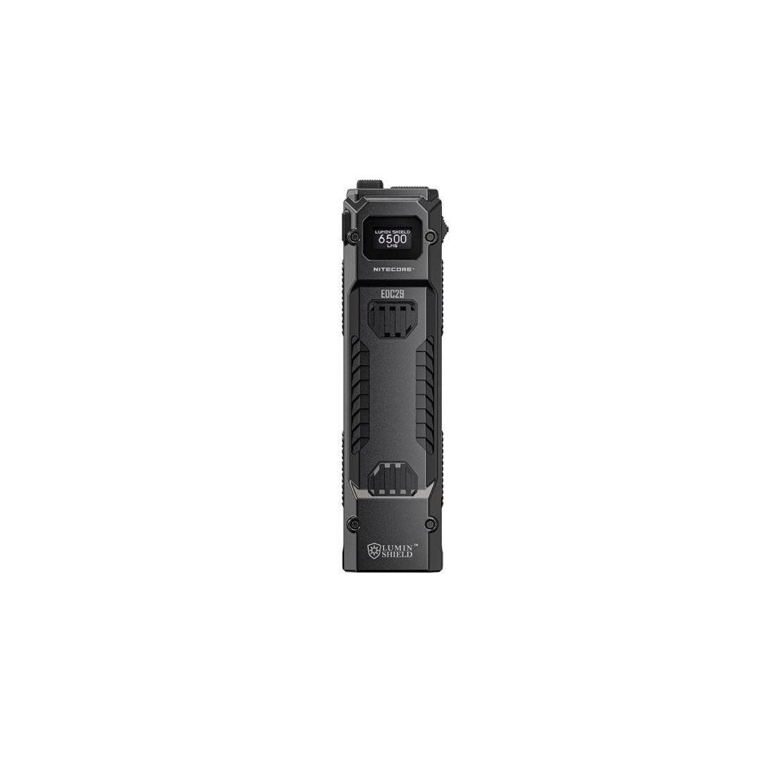 The Nitecore EDC29 flashlight offers exceptional brightness and throw, making it a very powerful flashlight yet still suited for everyday carry. Equipped with the innovative NiteLab UHi 20 MAX LED, the EDC29 delivers a powerful 6,500 lumen output and an impressive throw of up to 437 yards. Designed for versatility, it provides four brightness levels, along with Spotlight, Floodlight, and Strobe modes.