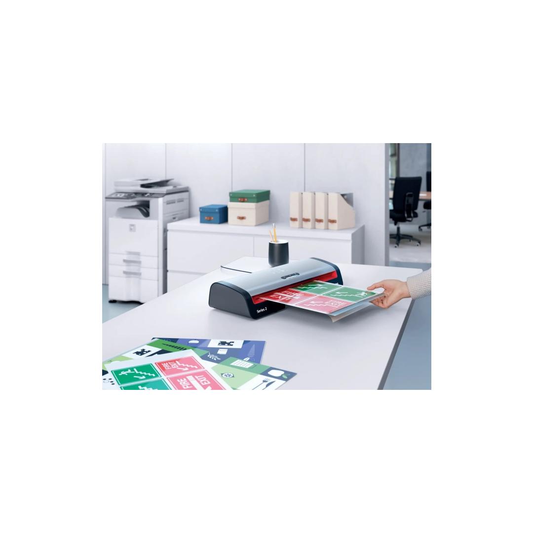 • Laminates an A4 document (75 mic) in just 36 seconds.