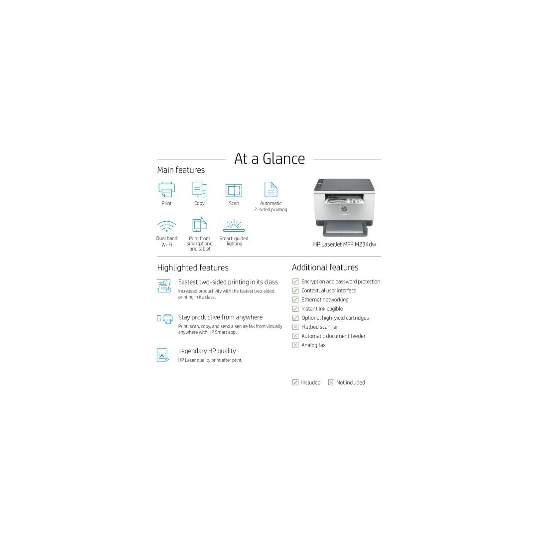 HP LaserJet MFP M234dw Printer Laser B/W A4 29 ppm Wi-Fi USB Bluetooth Ethernet LAN