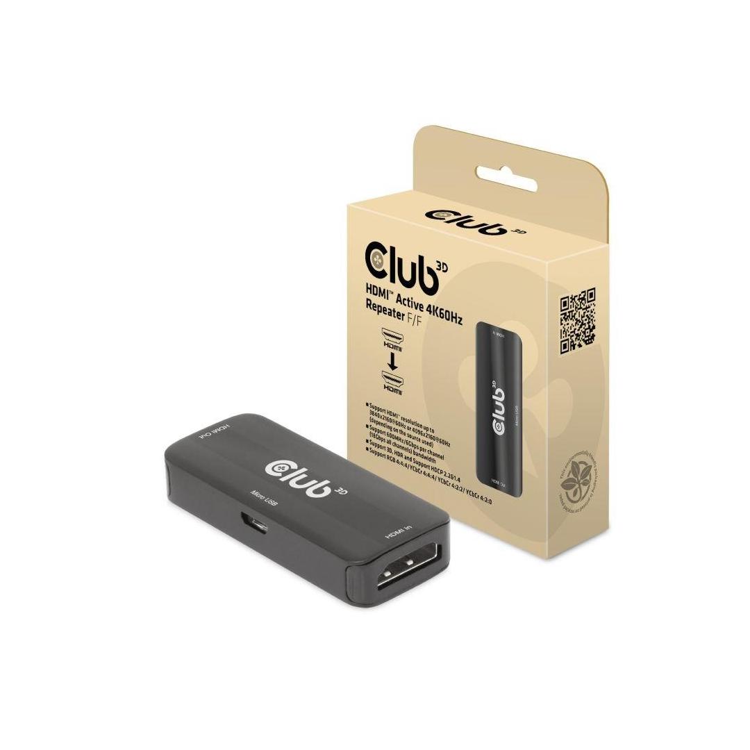 The Club 3D CAC-1307 HDMI™ Active 4K60Hz Repeater extends the length of any HDMI™ cable by regenerating the HDMI™ signal before it sends the outputs to the HDMI™ monitor or projector. The active HDMI™ repeater will clean out the digital noise (sparkles) in your picture. The input of the HDMI™ active repeater is connected with a long HDMI™ (male to male) cable from the HDMI™ device like DVD player or Satellite set top box with a HDMI™ output port. The HDMI™ active repeater output is connected to a second HDMI™ (male to male) cable to go from the output to any HDMI™ display or projector with a HDMI™ connector. The unit is placed as near as possible to the display(max. distance 5 m/16.4 ft) to remove any noise that has been generated by a long HDMI™ cable.