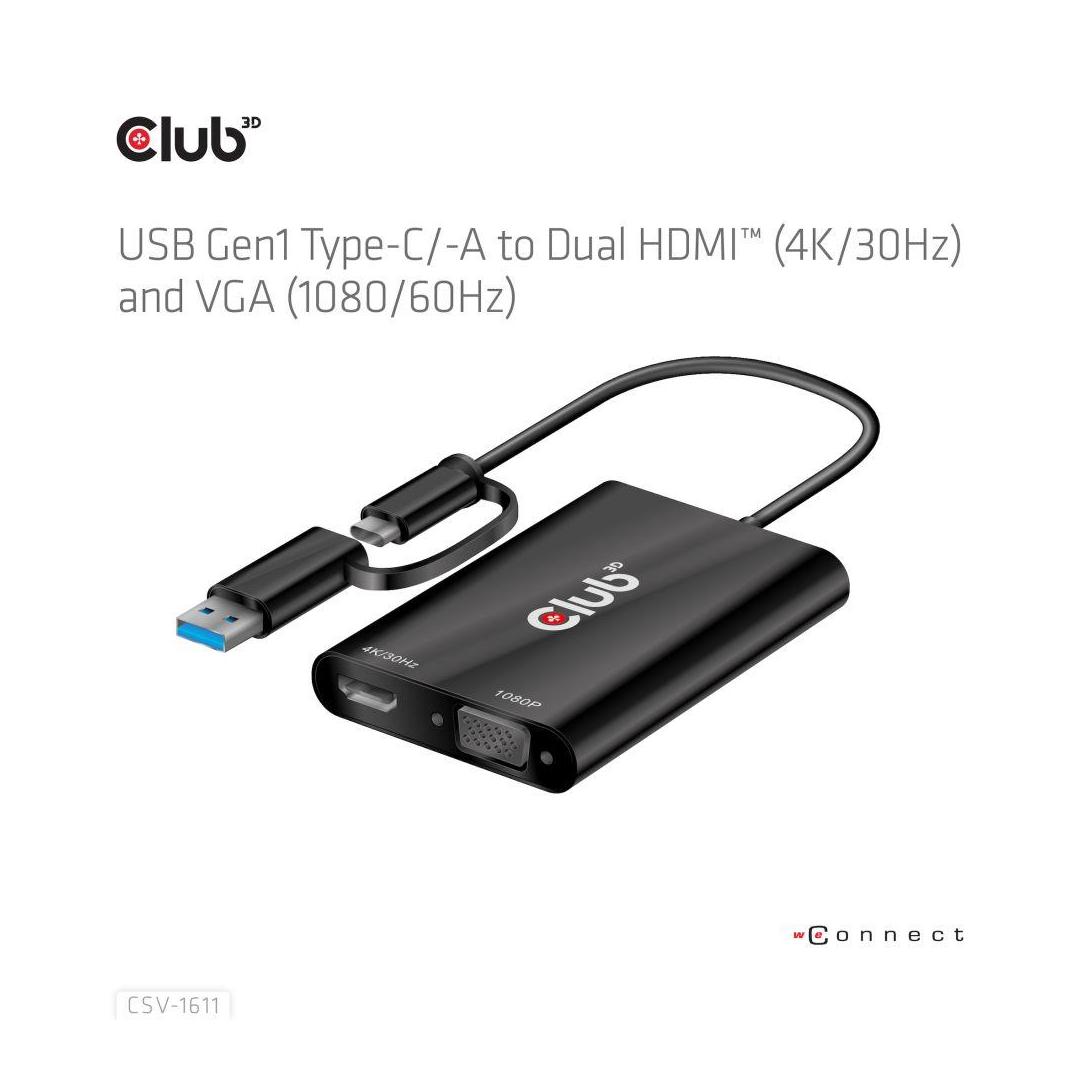 I/O ADAPTER USB-C TO HDMI/VGA/CSV-1611 CLUB3D