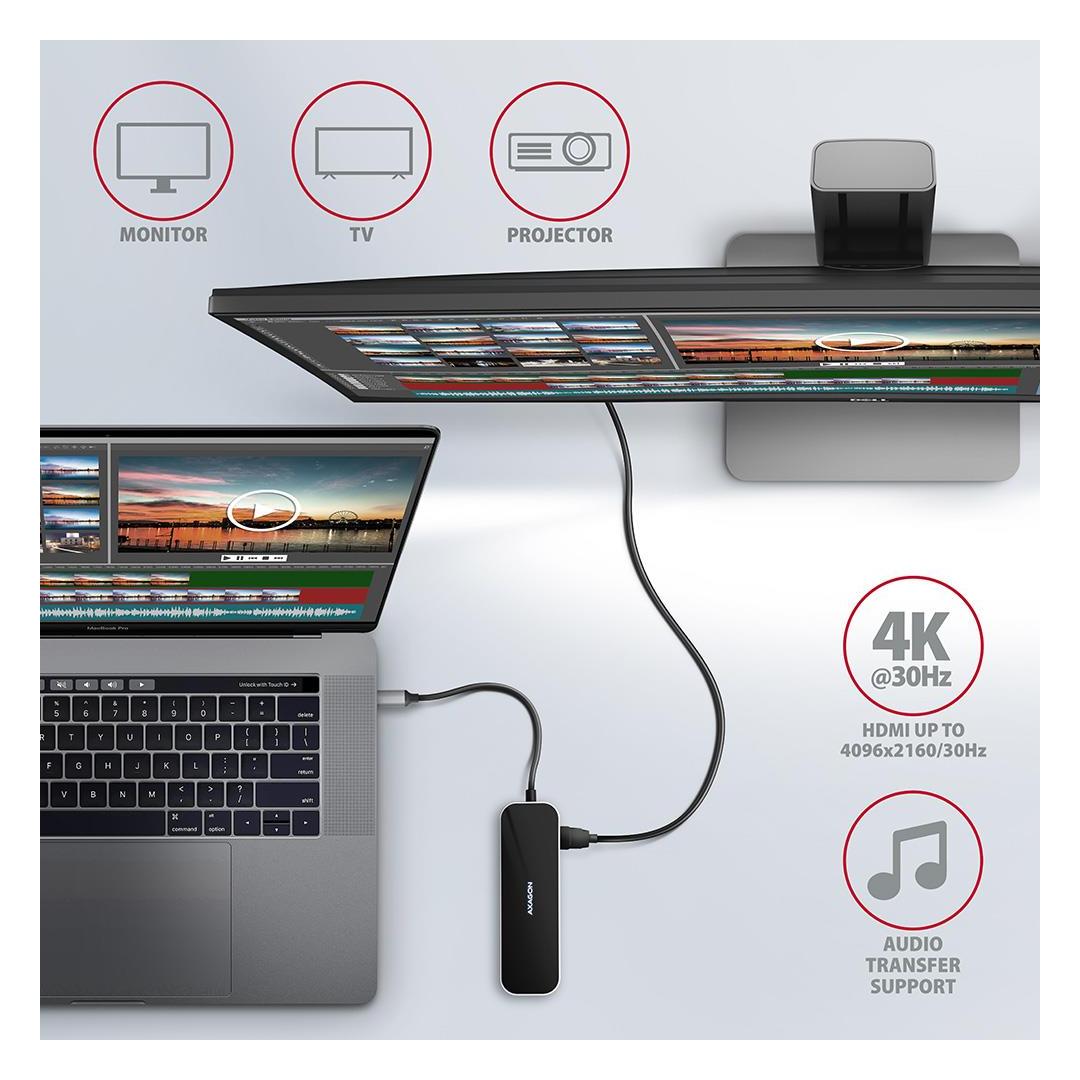 HDMI output provides high quality image up to 4K/30Hz Ultra HD resolution and supports multi-channel audio transmission. Popular gaming resolution WQHD 2560 x 1440px at 60Hz or FullHD 1920 x 1080px at 60, 100 and 120Hz max. are also supported. DisplayPort Alternate Mode (DP Alt Mode) enabled USB-C port or Thunderbolt 3 port is necessary for the proper function of video output.
