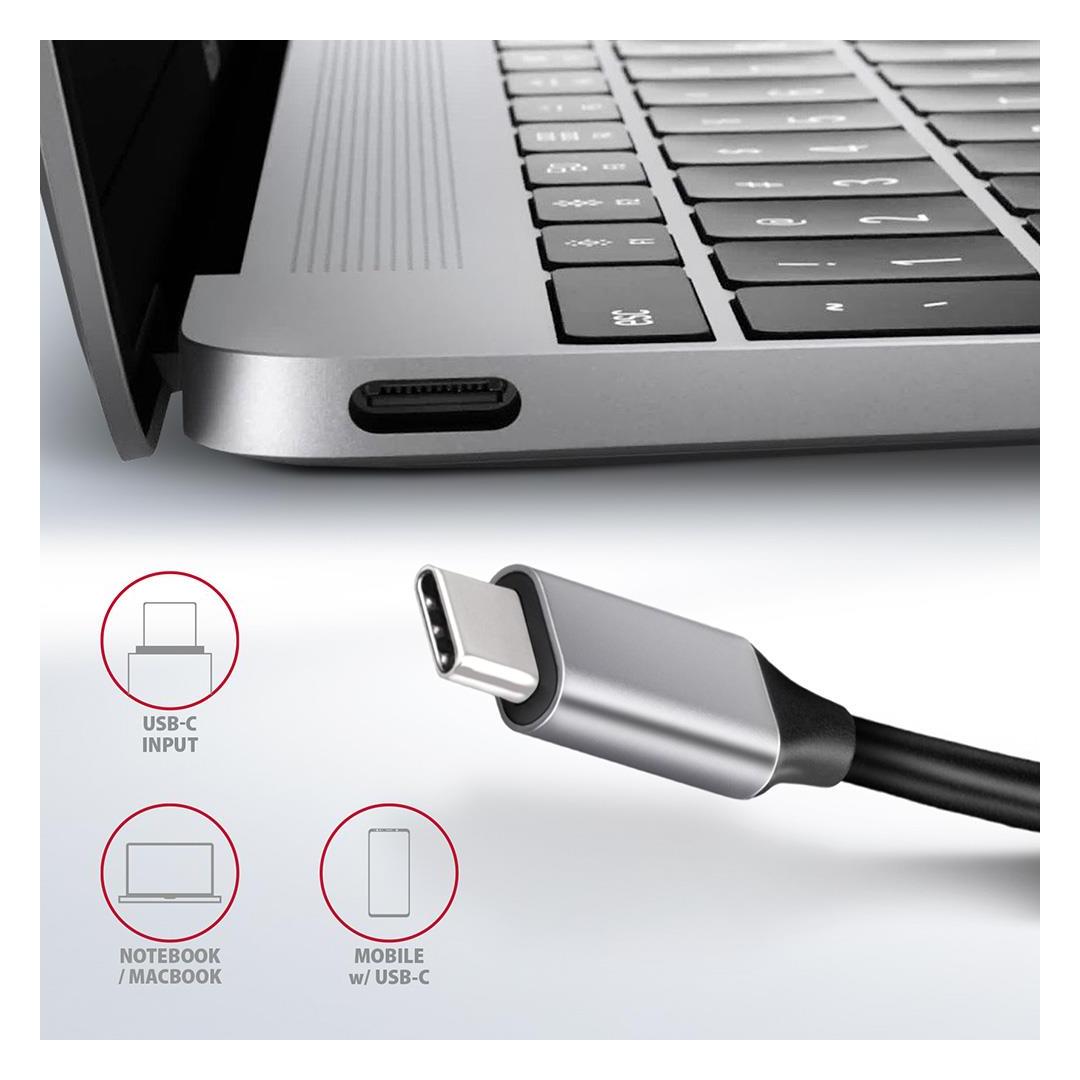 • USB-C hub with fixed 20 cm long cable,