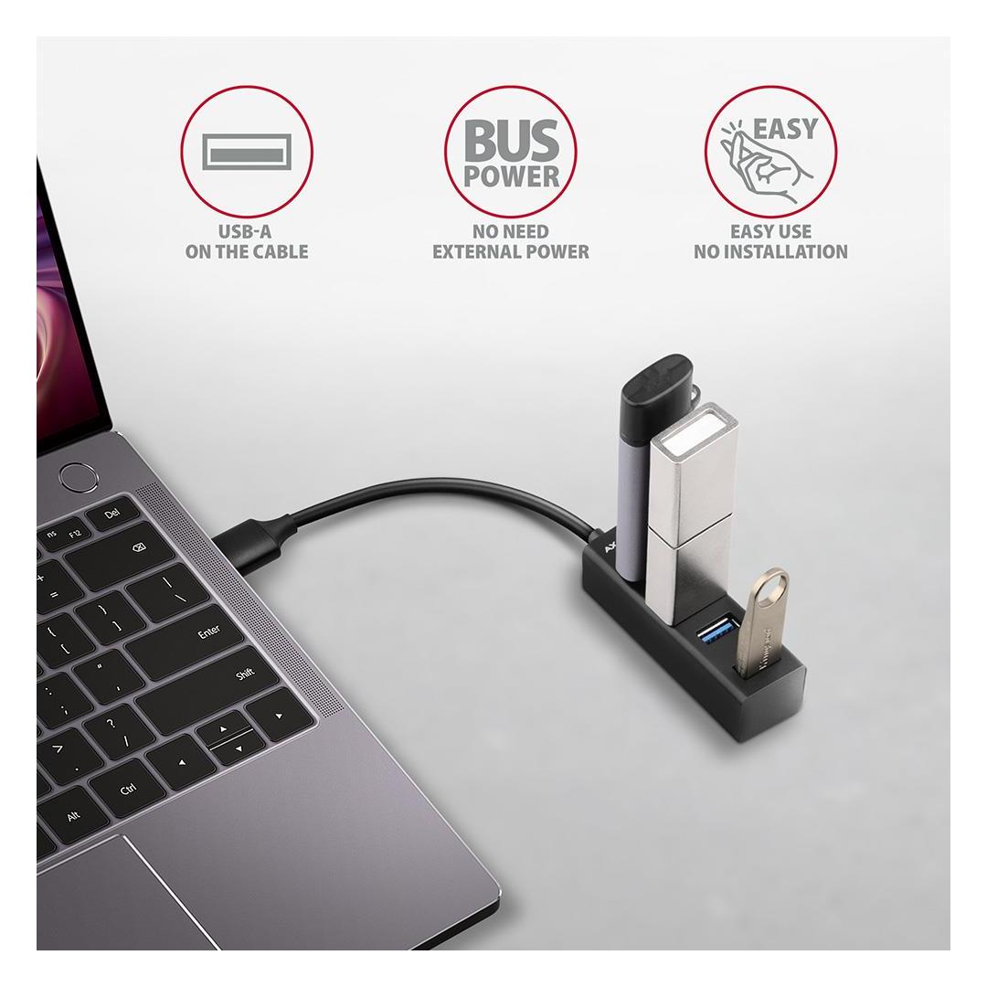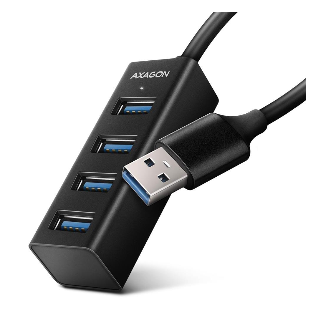 Miniature metal USB 3.2 Gen 1 (USB 3.0) hub AXAGON HUE-M1A fast and easy connects up to four USB devices to laptop or computer.