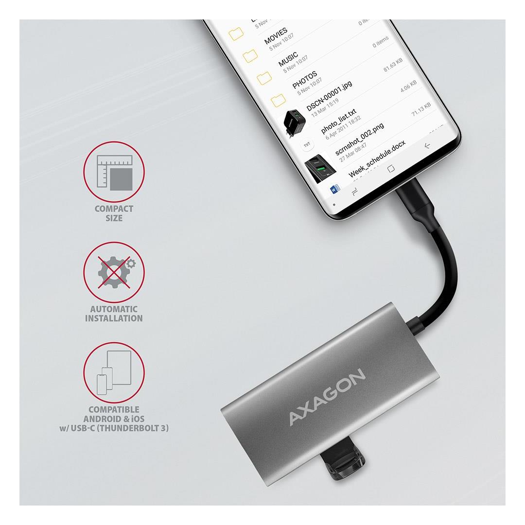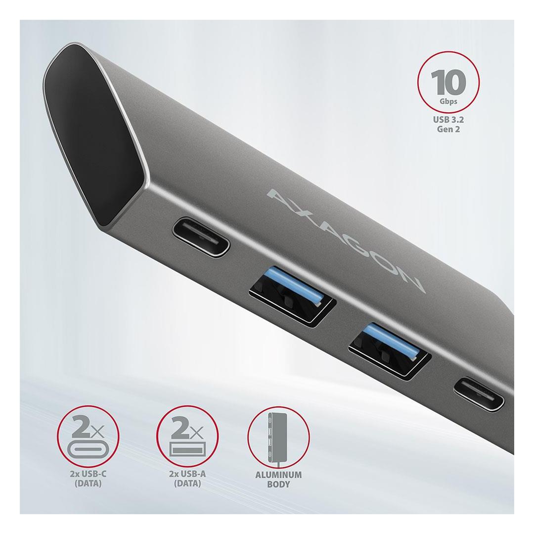 Superspeed USB-C 3.2 Gen 2 hub AXAGON HMC-4G2 SPEEDSTER 4 expands your laptop, computer or phone with four ports. You can easily and quickly connect up to four USB devices to your computer at the same time via the dual-sided USB-C connector.