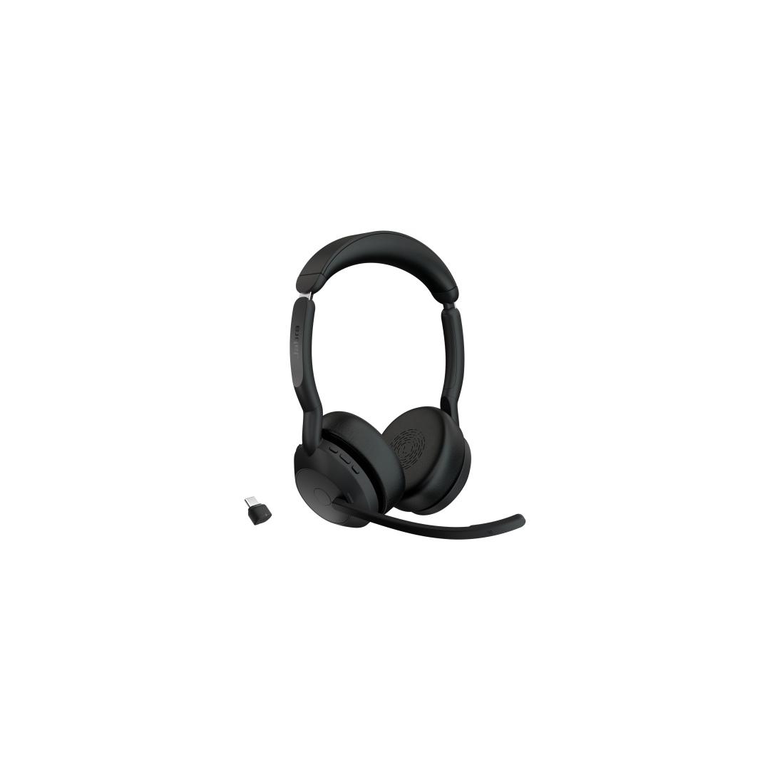 Jabra Evolve2 55 UC Stereo Link390c Wireless Headset, Bluetooth, USB-C, Black