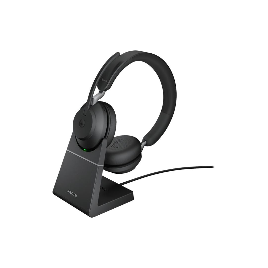 JABRA Evolve2 65 MS Stereo Headset on-ear Bluetooth wireless USB-C noise isolating black with charging stand Certified for MS Te