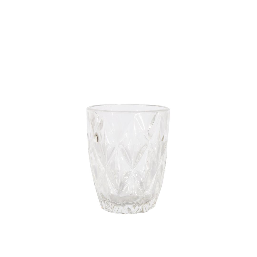 Joogiklaas madal CORAL 250ml, D8xH10cm, läbipaistev. Materjal: klaas, reljeefne rombimuster.