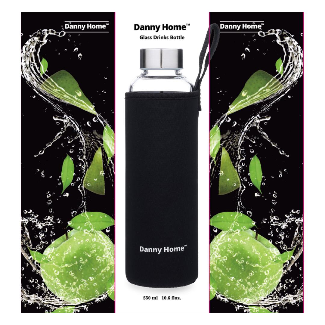 Joogipudel GLASS H22,5cm 550ml klaasist, must ümbris