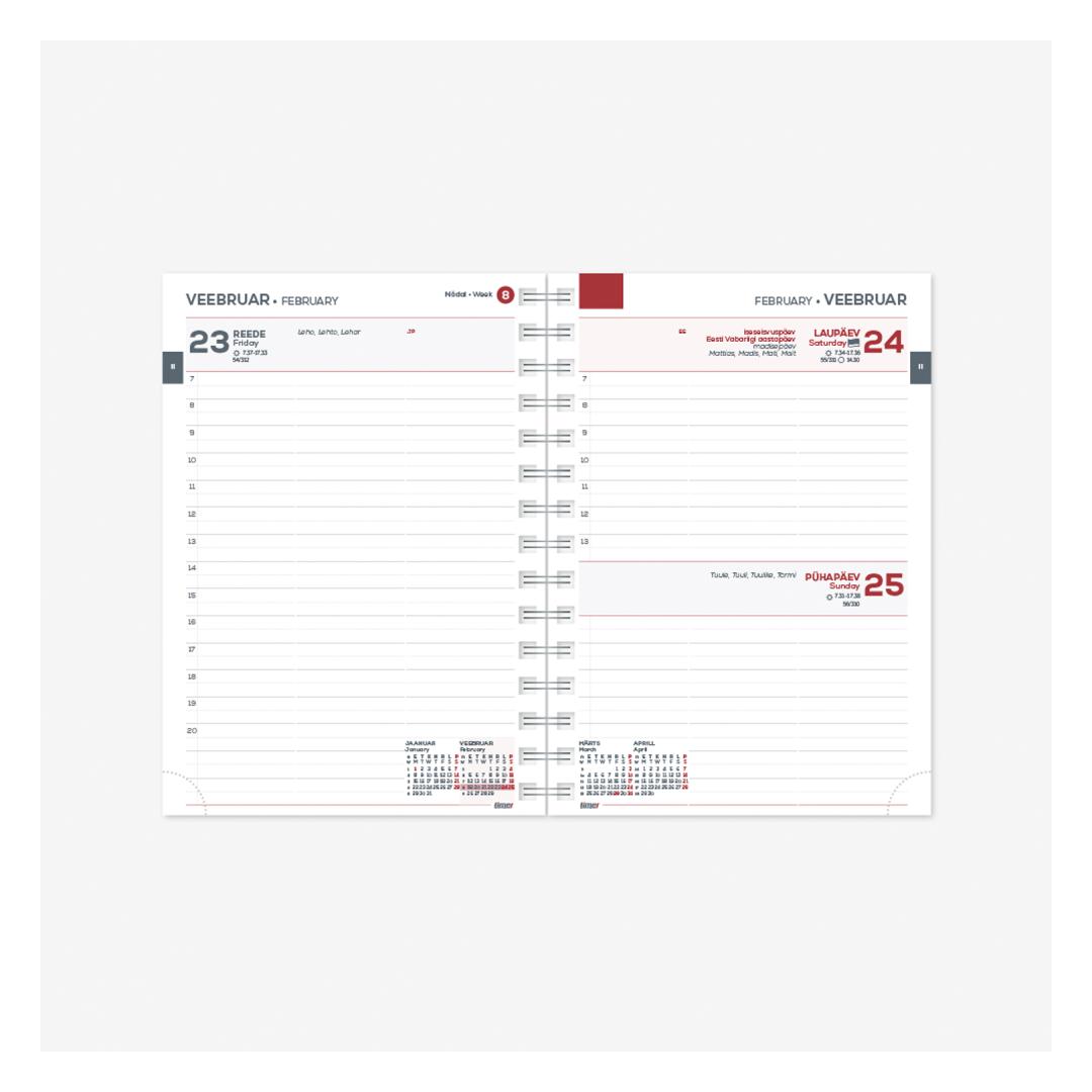 Sisumõõt: 131 x 184 mm Keel: eesti ja inglise Spiraalköide Perforeeritud lehenurgad Sobib järgnevatele kaantele: KANTSLER Spirex KANTSLER Trend