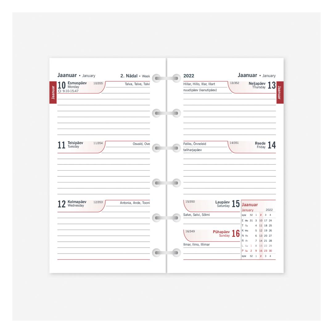 Sisumõõt: 73 x 135 mm Keel: eesti ja inglise Augustatud lahtised lehed (6 auku) Sobib järgnevatele kaantele: MINI Timex