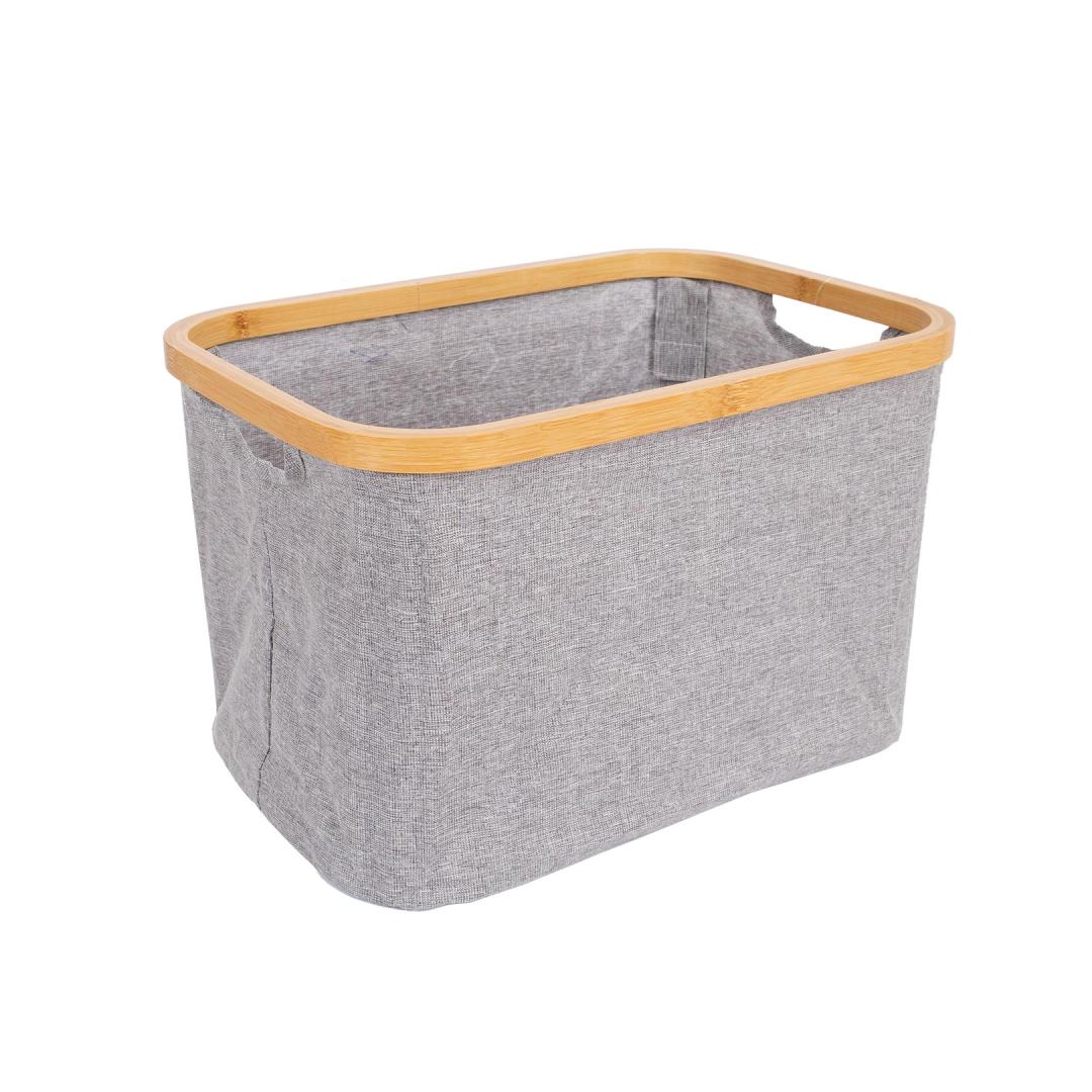 Kokkupandav, kangast säilituskast. Bambusest ülemine raam ja metallist vardad pikenduseks.