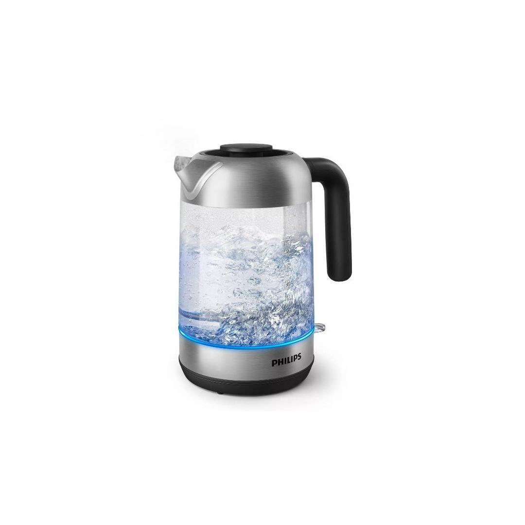 Our family-size 1.7L glass kettle features a modern design with intuitive blue light
