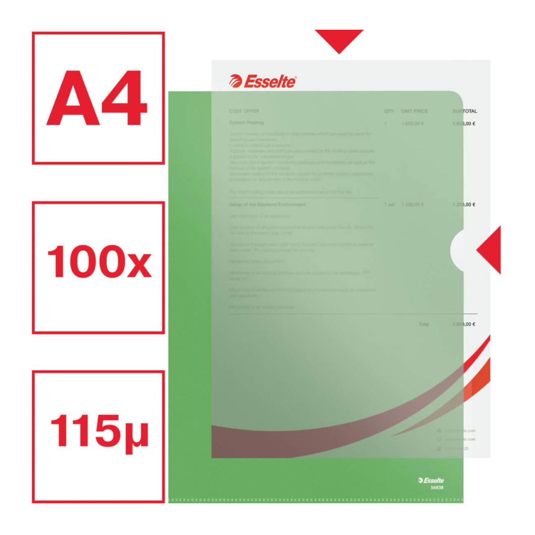 Kiletasku L-tasku A4 ESSELTE 115mic 100tk roheline
