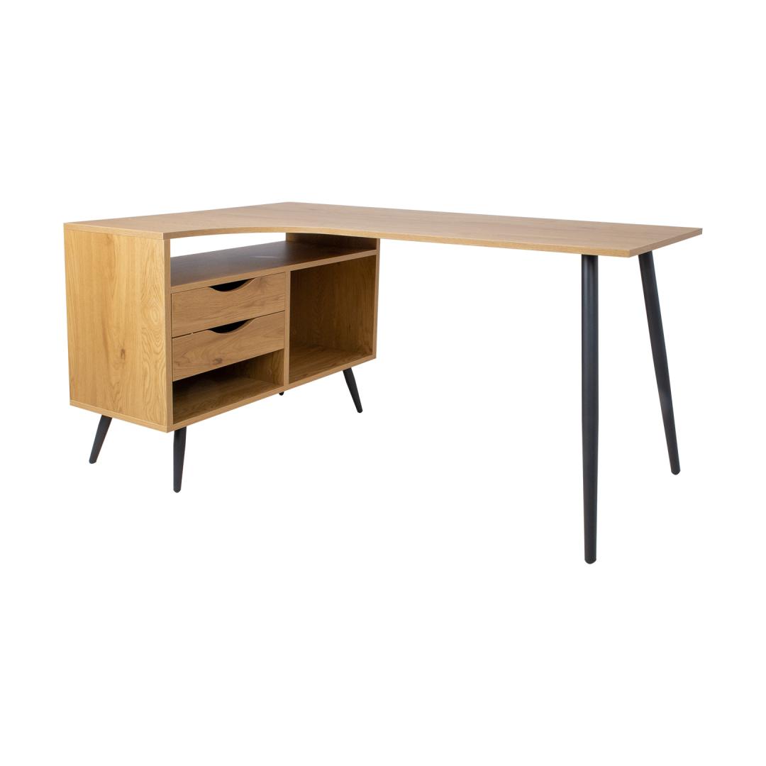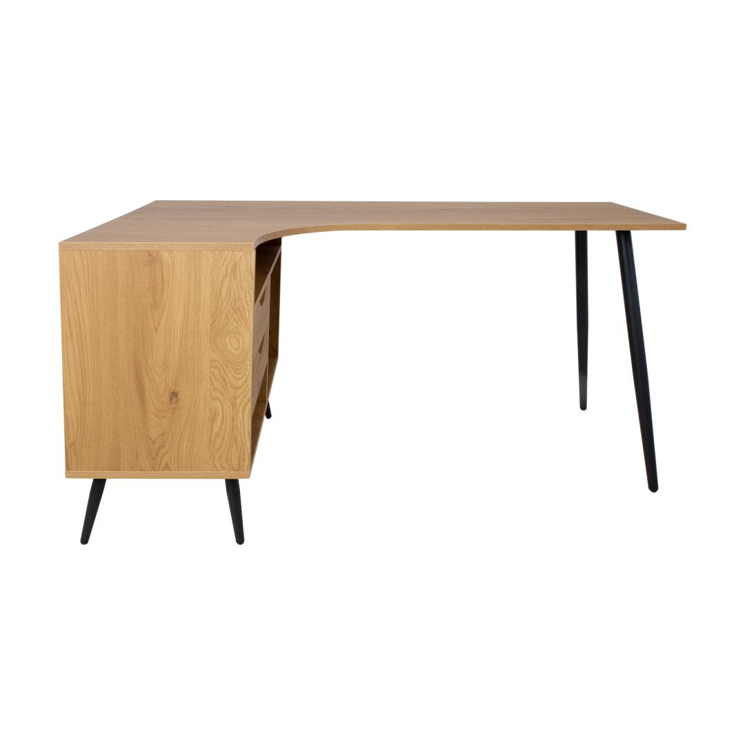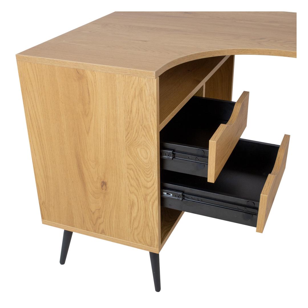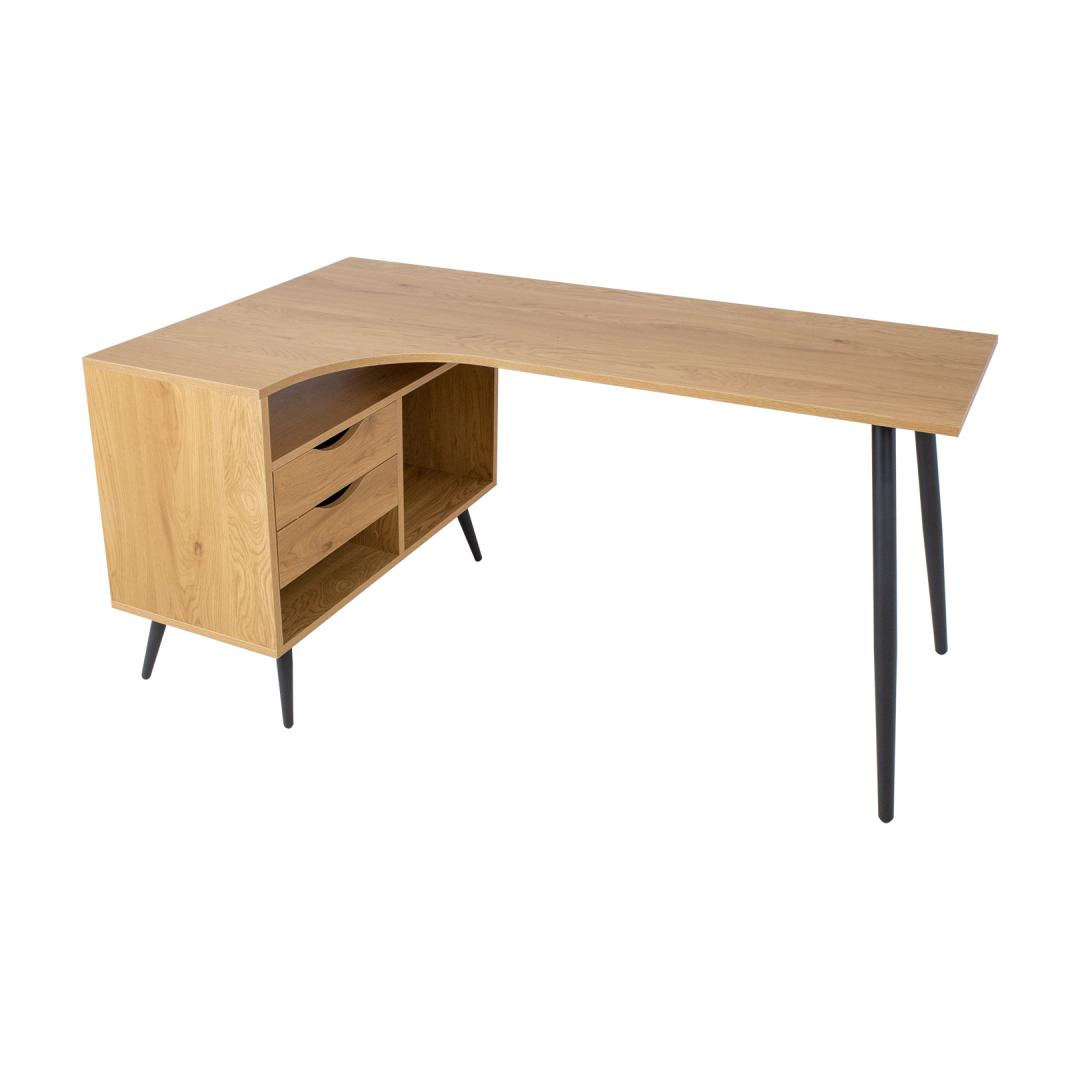 Kirjutuslaud GEORGIA 145x80xH75cm, melamiin tammedekooriga. Laud on valmistatud melamiinkattega mööbliplaadist. Lauajalad on valmistatudmetallist ja viimistletud musta pulbervärviga. Lauaplaadi all on kaks sahtlit ja kolme erinevas mõõdus avatud riiulivahet. Sahtlite siinid on vaikselt sulguvad. Lühemate jalgade kõrgus on 20cm.