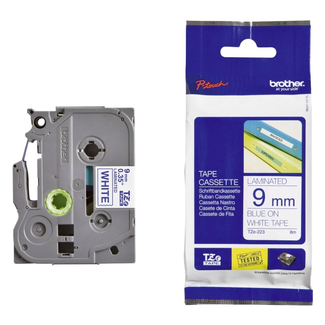 Kleepkirjalint/markeerimislint BROTHER TZE-223 9mm x 8m sinine/valgel