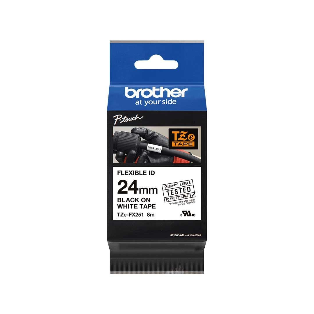 Kleepkirjalint/markeerimislint BROTHER TZE-FX251 Flexi 24mm x 8m must/valgel