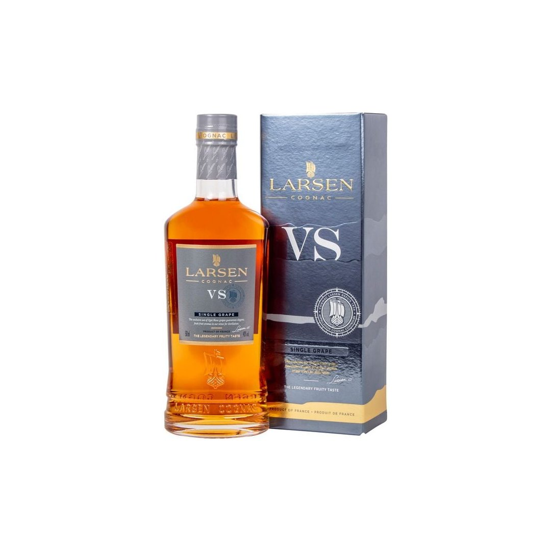 VS Vikings konjakil on kirgas kuldne värv. See konjak on põhiliselt valmistatud Fins Bois konjakitest, mis pakub puuviljast aroomi nagu kuivatatud aprikoosid ja apelsiniõied ning vaniljenoodid. Atraktiivse aroomi ning pika ja puuviljase maitsega konjak on täis harmooniat. Larsen VS konjak sobib nautimiseks toatemperatuuril puhtalt või kokteili koostisosana
