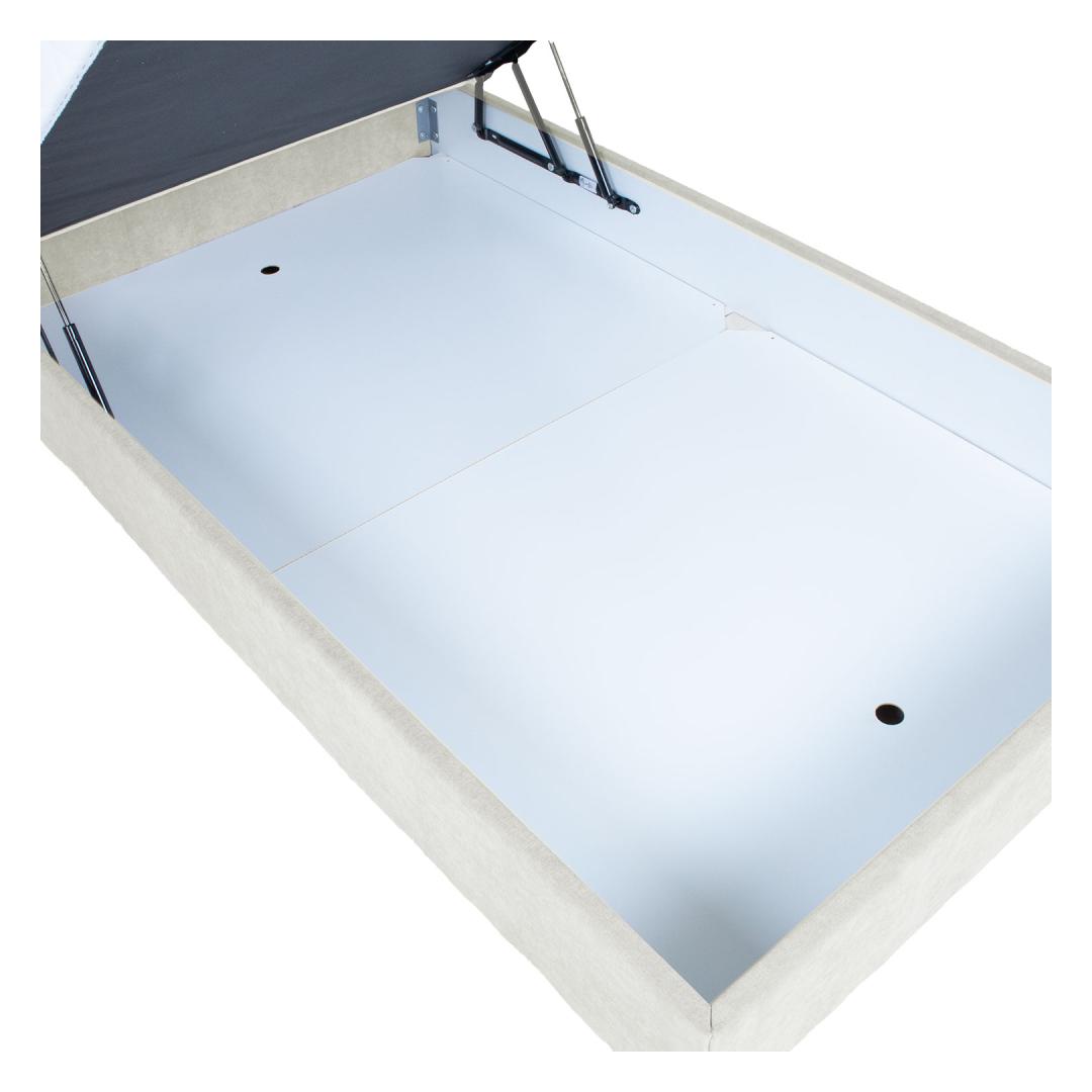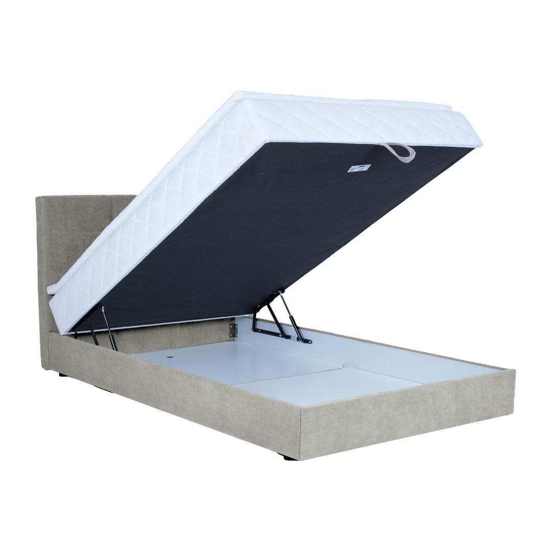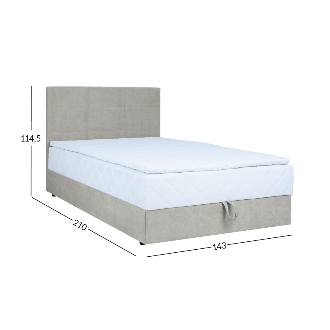 Voodil on pocket-vedrustusega madrats, 210 vedru/m2. Vedrude kõrgus on 13cm. Vedrusid katab 23kg/m3 poroloonikiht, mis on 2cm paks. Madratsi jäikus: jäik. Kattemadratsi sisuks on 23kg/m3 poroloon. Kattemadrats on kaetud 200g/m2 polüestervatiiniga. Voodi all on mahukas panipaik, mis on valmistatud täispuidust ja lamineeritud puitlaastplaadist. Selle küljed on kaetud porolooniga. Voodi karkass on valmistatud täispuidust. Voodiraam on kaetud kangaga, 30 000 Martindale´i. Komplekti kuulub voodipeats, mis on voodiga sama lai. Peatsi paksus on 7cm. Kaasas on ühenduselemendid peatsi kinnitamiseks voodi külge. Voodil on neli plastikust jalga, mis on musta värvi. Voodijalgade kõrgus on 2,5cm, kattemadratsi kõrgus 4cm, madratsi kõrgus 16cm. Voodi magamispinna kõrgus on 52cm. Toote mõõdud on 143x210x114,5cm. Toode on valmistatud EL-is.