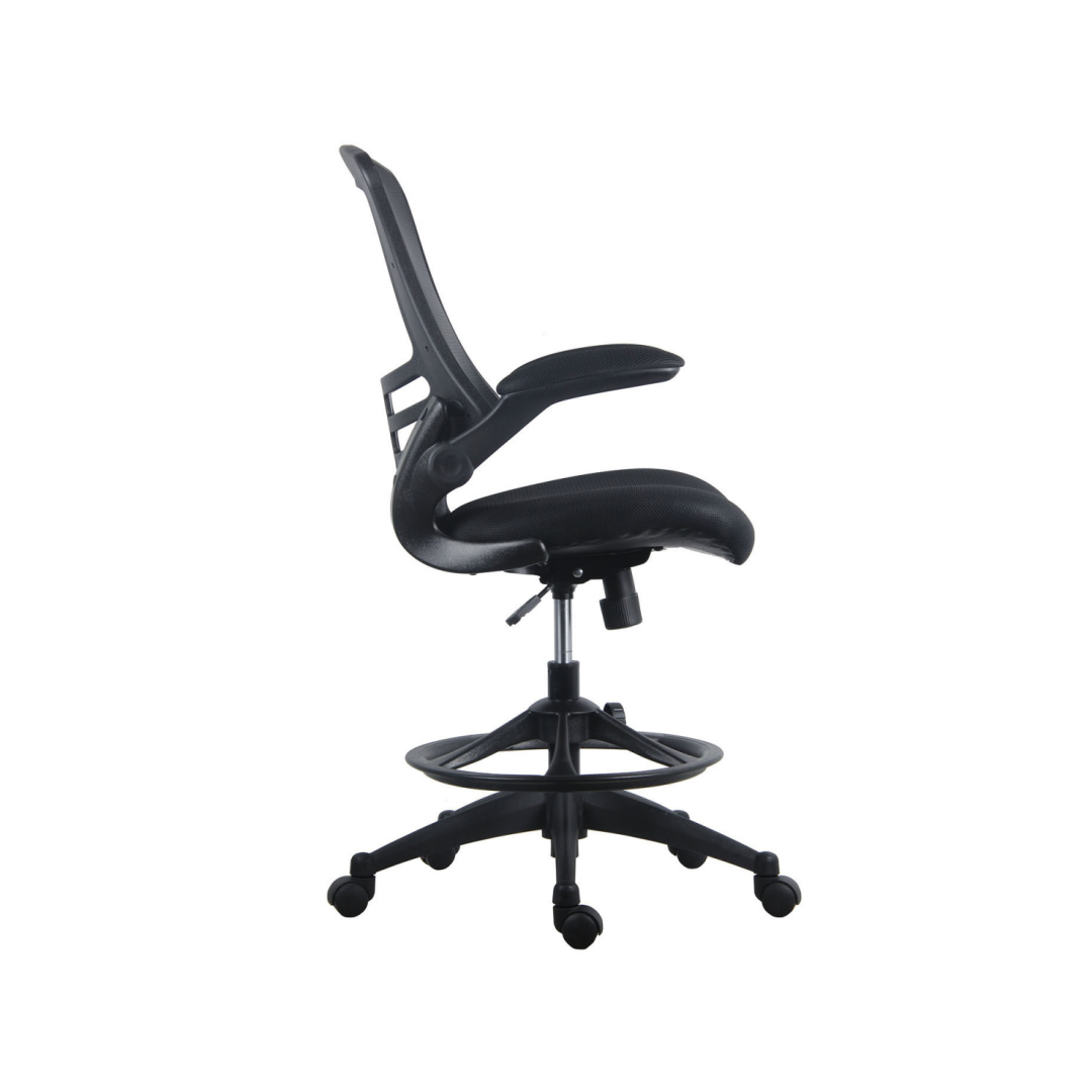 Kõrge töötooli iste on kaetud polüesterkangaga, seljatugi polüestervõrkkangaga. Toolil on pöördmehhanism. Istme kõrgus reguleeritav gaasamordi abil. Pehme polsterdusega kangaga kaetud käetugesid on võimalik üles tõsta. Reguleeritava kõrgusega jalatugi. 5-haruline mustast plastikust jalarist, vastupidavad kummirattad. Tooli kõrgus on reguleeritav 109-128,5 cm, istme kõrgus 57-76,5cm, seljatoe kõrgus 54cm. Maksimaalne kandevõime kuni 100 kg.