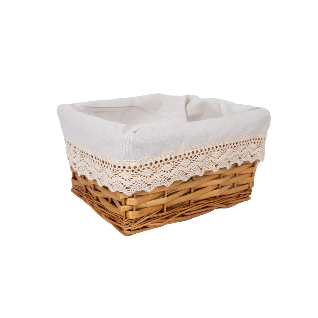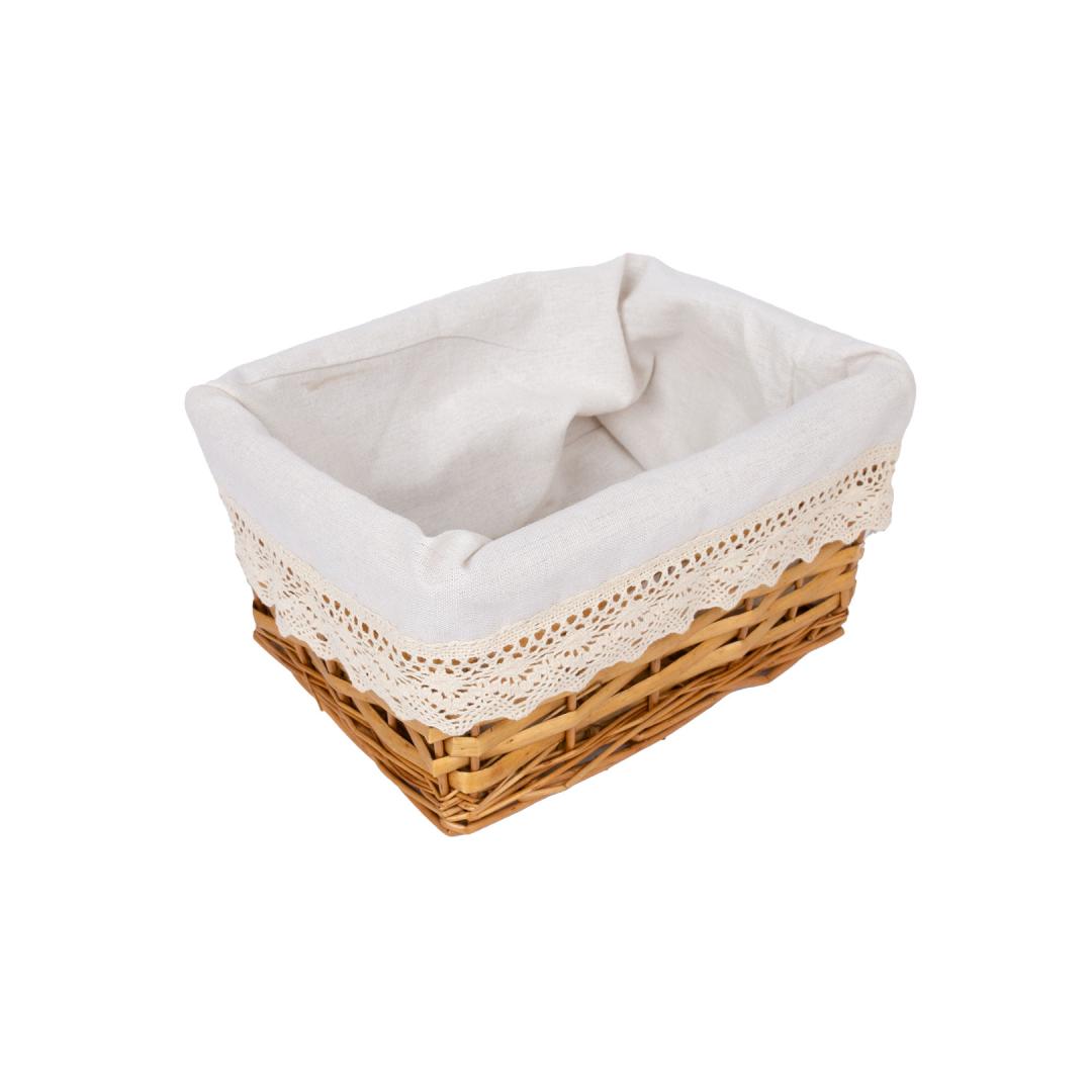 Korv MAX, 24x18xH12cm, helepruun, pitsiga. Korvi materjal: naturaalne korvipaju, lakitud. Tekstiilvooder: puuvillane pitsiga. Korv MAX, 24x18xH12cm, helepruun, pitsiga. Korvi materjal: naturaalne korvipaju, lakitud. Tekstiilvooder: puuvillane pitsiga.