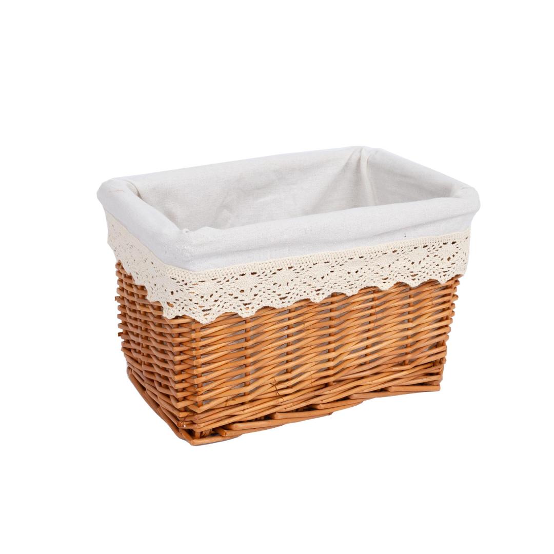 Korvi materjal: naturaalne korvipaju, lakitud. Tekstiilvooder: puuvillane pitsiga. Korvi materjal: naturaalne korvipaju, lakitud. Tekstiilvooder: puuvillane pitsiga.
