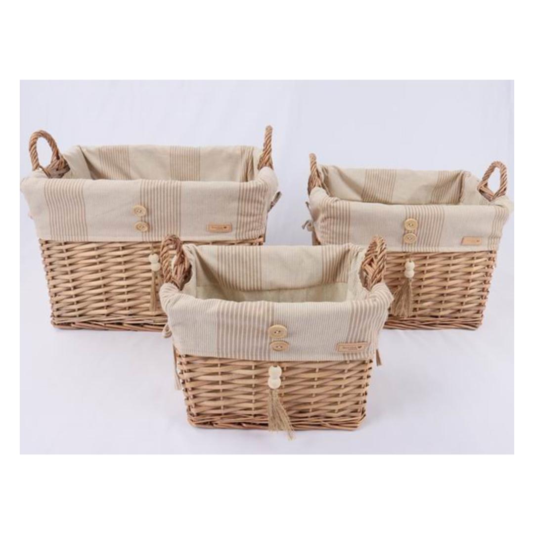 Tekstiilvooder: puuvillane triibuline kangas. Korvi materjal: käsitsi punutud naturaalne pajuvits.