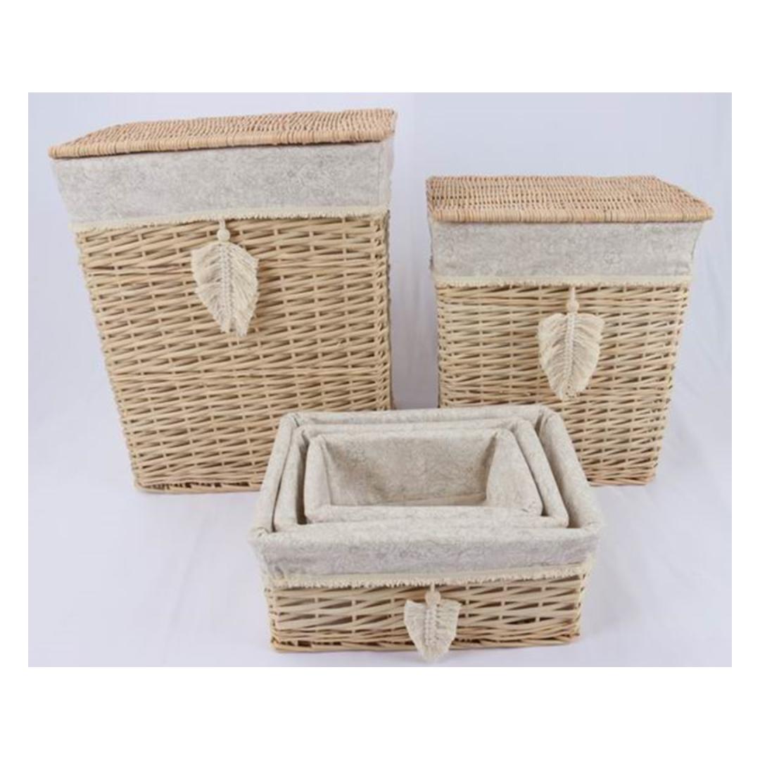 Tekstiilvooder: puuvillane taimemustriga kangas. Korvi materjal: käsitsi punutud naturaalne pajuvits.