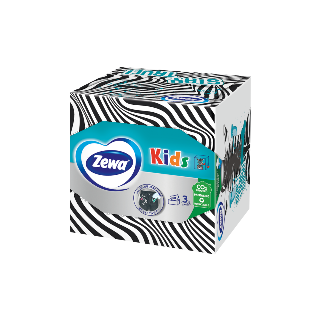 Kosmeetilised salvrätikud 3-kihiline ZEWA Kids 3D 60tk/karp lõhnatud