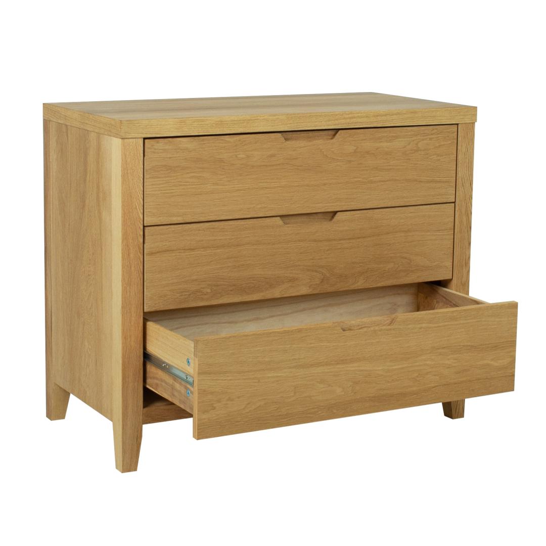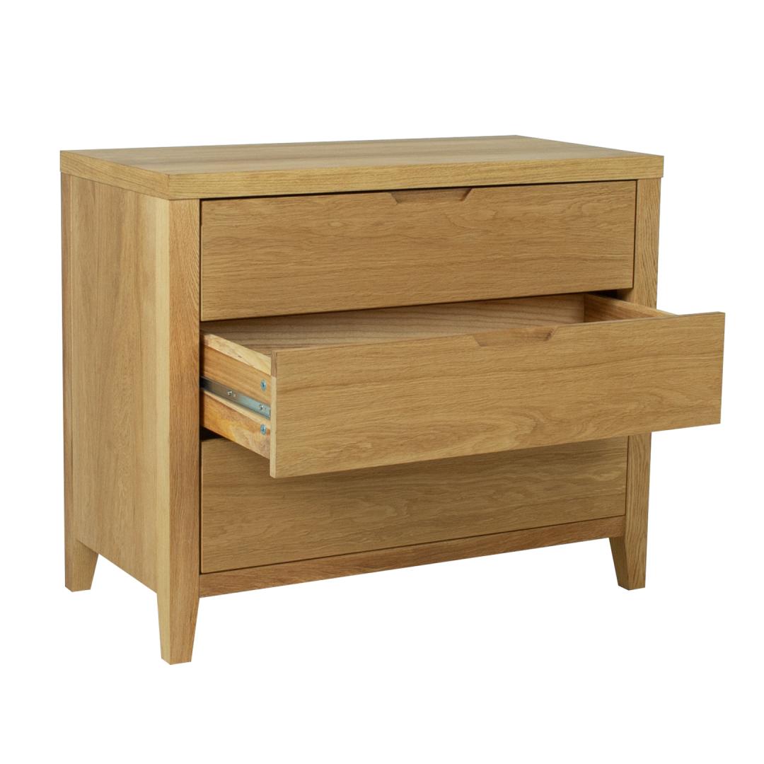 Kummut CHAMBA 3-sahtliga 90x45xH75cm. Kummuti karkass on valmistatud täispuidust. Pealmine plaat: 19mm MDF, küljepaneelid ja sahtlite esipaneelid: mööbliplaat. Kummut on kaetud naturaalse tammespooniga. Sahtlitel on metallist siinid. Kummut CHAMBA 3-sahtliga 90x45xH75cm. Kummuti karkass on valmistatud täispuidust. Pealmine plaat: 19mm MDF, küljepaneelid ja sahtlite esipaneelid: mööbliplaat. Kummut on kaetud naturaalse tammespooniga. Sahtlitel on metallist siinid.