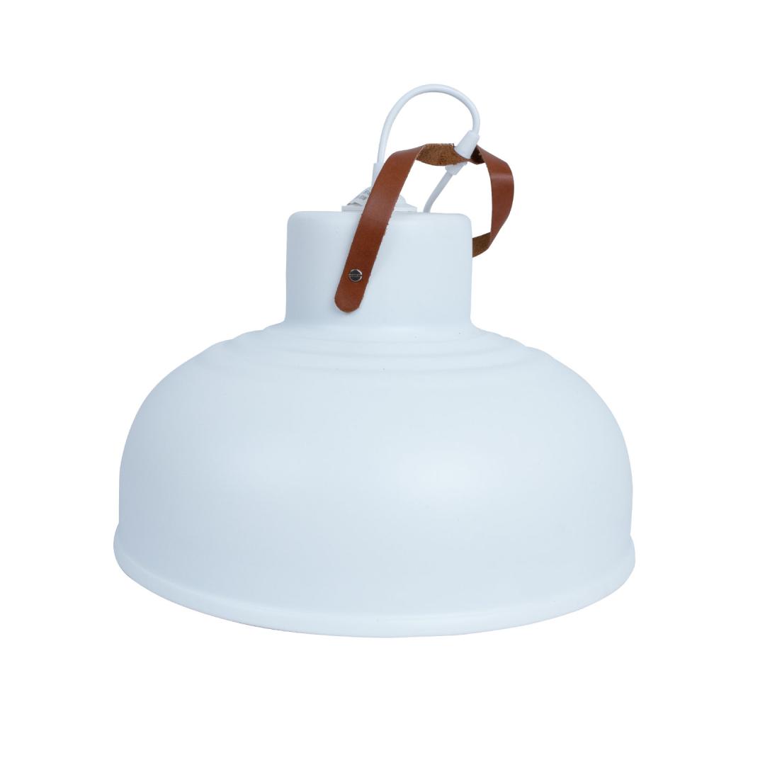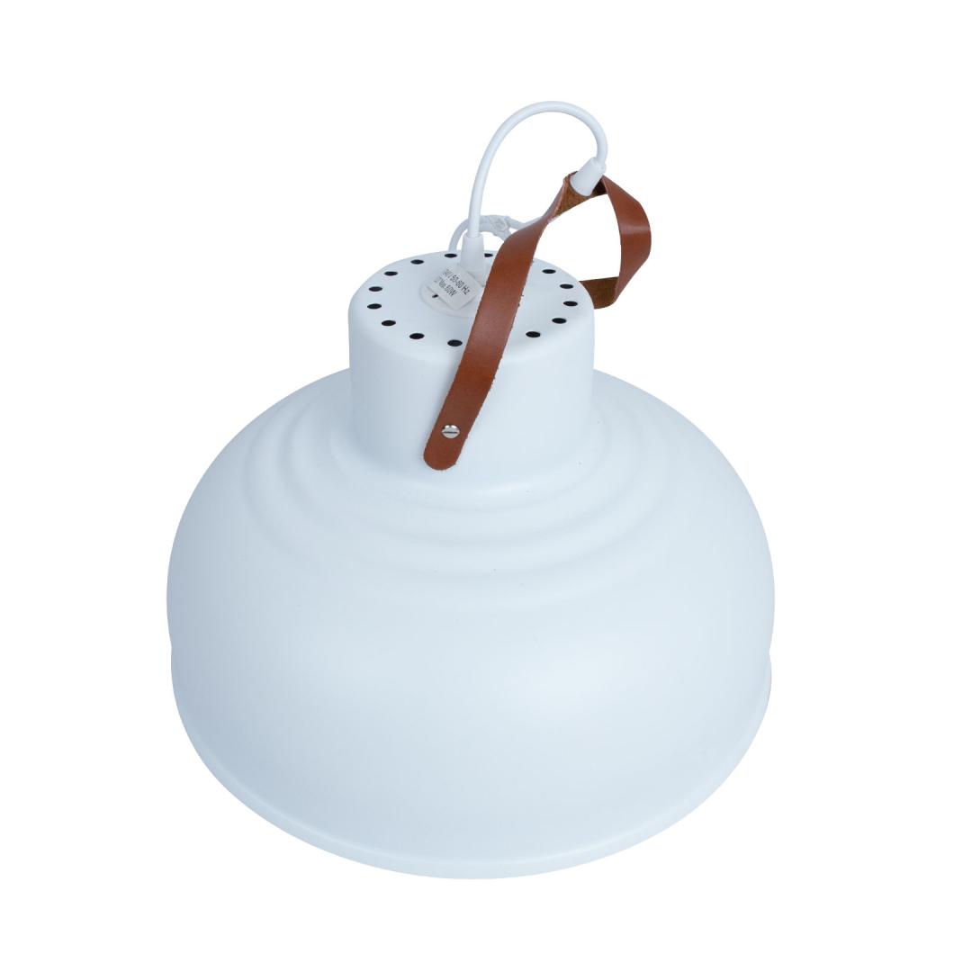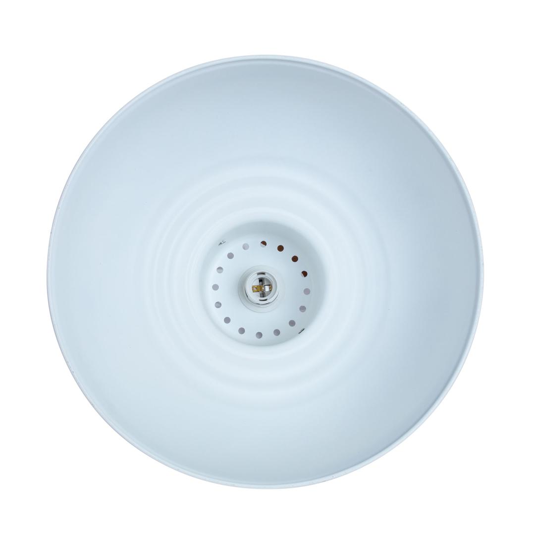 Valgusti on mõeldud kasutamiseks ainult siseruumides. Valge metallist lambikuppel.