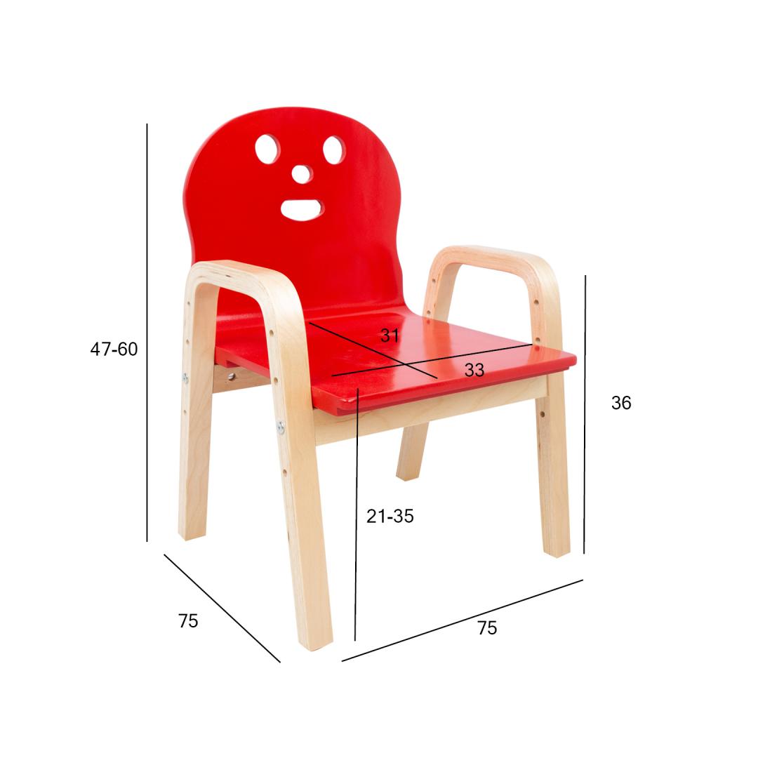 Lastetool HAPPY, punane. Tool HAPPY kasvab koos teie lapsega! Istme kõrgust on võimalik tõsta neli korda vastavalt lapse kasvule - 21/25,5/30/34,5cm. Tooli üldmõõdud on 39x36xH46,5/51/55,5/60cm. Istme laius 33cm, istme sügavus 31cm, seljatoe kõrgus 27cm, käetoe kõrgus maast 36cm. Materjal: painutatud paplivineer kasespooniga. Iste on värvitud punaseks, jalad ja raam on viimistletud naturaalse lakiga. Kaalupiirang 40kg. Lastetool HAPPY, punane. Tool HAPPY kasvab koos teie lapsega! Istme kõrgust on võimalik tõsta neli korda vastavalt lapse kasvule - 21/25,5/30/34,5cm. Tooli üldmõõdud on 39x36xH46,5/51/55,5/60cm. Istme laius 33cm, istme sügavus 31cm, seljatoe kõrgus 27cm, käetoe kõrgus maast 36cm. Materjal: painutatud paplivineer kasespooniga. Iste on värvitud punaseks, jalad ja raam on viimistletud naturaalse lakiga. Kaalupiirang 40kg.
