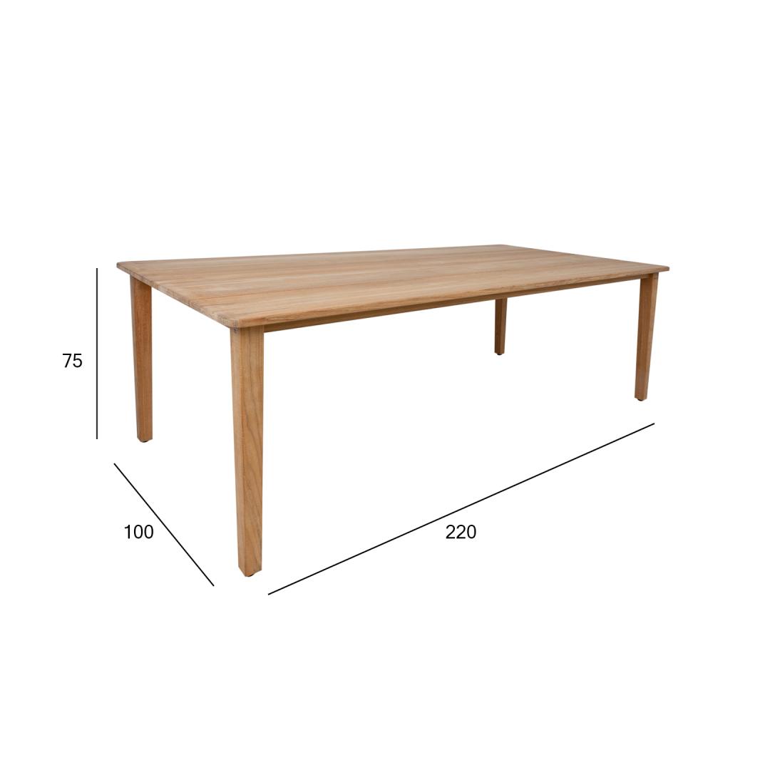 Laud MALDIVE 220x100xH75cm, tiikpuu. Eksklusiivne tiikpuust sari MALDIVE on suurepärane valik ka kõige nõudlikumale maitsele ning sobib kasutamiseks nii õues, kui siseruumides. Laud on valmistatud hoolikalt valitud küpsest tiikpuust. Puidu peenlihvitud pind on täielikult naturaalne. Tänu suurele looduslike õlide sisaldusele on tiikpuu väga vastupidav niiskuse ning puidukahjurite suhtes ning ei vaja täiendavat viimistlemist või õlitamist. Tiikpuu talub väga hästi erinevaid ilmastikutingimusi ja säilitab oma suurepärase välimuse ja parimad omadused pikkadeks aastateks. Mida küpsem on puit, seda suurem on selle tihedus ja õli sisaldus ja seda vastupidavam ja stabiilsem on see ilmastikutingimuste suhtes. Päikesevalguse ja niiskuse mõjul muutub puidu pind aja jooksul kaunilt hõbehalliks. Selline värvimuutus on loomulik ning ei mõjuta puidu kvaliteeti. HOOLDUS: puhastage mööblit regulaarselt, kaitske liigniiskuse ja UV kiirguse eest. Puidust pindade värskendamiseks võib need soovikorral kergelt üle lihvida. Välitingimustes kasutatava mööbli eluea pikendamiseks soovitame kasutada välimööbli katteid. HOIUSTAMINE: suvehooaja lõppedes soovitame aiamööblit hoiustada siseruumides. Puhastage ja kuivatage mööbel enne hoiule panekut. Kasutage hoiustamiseks kuiva ning hea ventilatsiooniga ruumi.