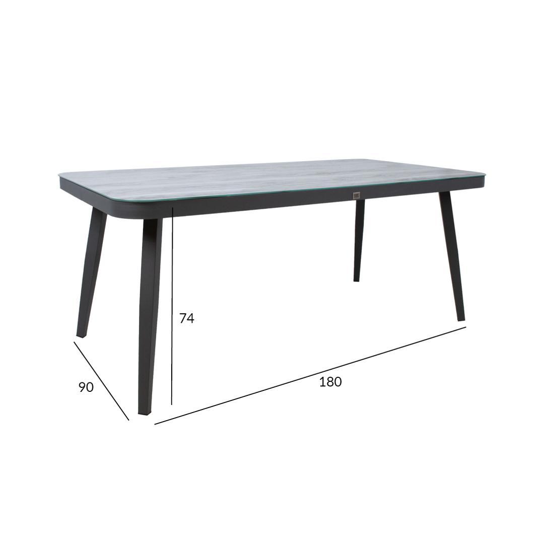 Laud MARIE 180x90xH74cm, hall, alumiinium, klaas