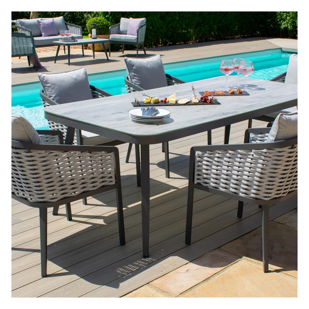 Laud MARIE 180x90xH74cm, hall. Lauaplaat: 5mm hall dekoorklaas. Jalad ja raam on valmistatud alumiiniumist ka viimistletud halli pulbervärviga. Toode on muutlikes ilmastikutingimustes hästi vastupidav ja lihtsalt hooldatav. HOIUSTAMINE: suvehooaja lõppedes soovitame aiamööblit hoiustada siseruumides. Puhastage ja kuivatage mööbel enne hoiule panekut. Kasutage hoiustamiseks kuiva ning hea ventilatsiooniga ruumi.