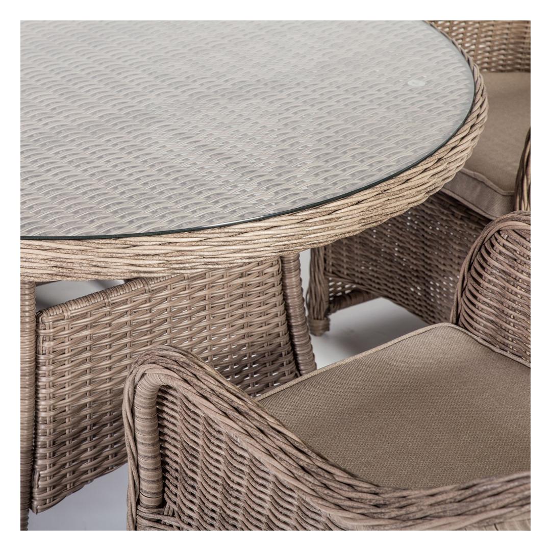 Laud TOSCANA D110xH73cm, beeþ. Lauaplaat: 5mm läbipaistev karastatud klaas. Laua pulbervärvitud alumiiniumraam on kaetud plastikpunutisega. Toode on muutlikes ilmastikutingimustes hästi vastupidav ja ei nõua erilist hooldust. Välitingimustes kasutatava mööbli eluea pikendamiseks soovitame kasutada välimööbli katteid. HOIUSTAMINE: suvehooaja lõppedes soovitame aiamööblit hoiustada siseruumides. Puhastage ja kuivatage mööbel enne hoiule panekut. Kasutage hoiustamiseks kuiva ning hea ventilatsiooniga ruumi.