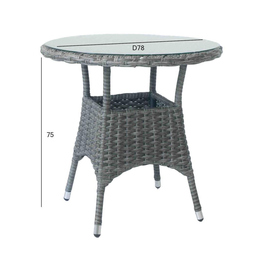Laud WICKER on kombineeritav kõigi sama sarja toodetega. Laua raam on valmistatud alumiiniumist ja kaetud plastikpunutisega. Lauaplaat: 5mm karastatud läbipaistev klaas. Laua mõõdud D78xH75cm. Toode on muutlikes ilmastikutingimustes vastupidav ja väga lihtsalt hooldatav. Välitingimustes kasutatava mööbli eluea pikendamiseks soovitame kasutada välimööbli katteid. HOIUSTAMINE: suvehooaja lõppedes soovitame aiamööblit hoiustada siseruumides. Puhastage ja kuivatage mööbel enne hoiule panekut. Kasutage hoiustamiseks jahedat, kuiva ning hea ventilatsiooniga ruumi.
