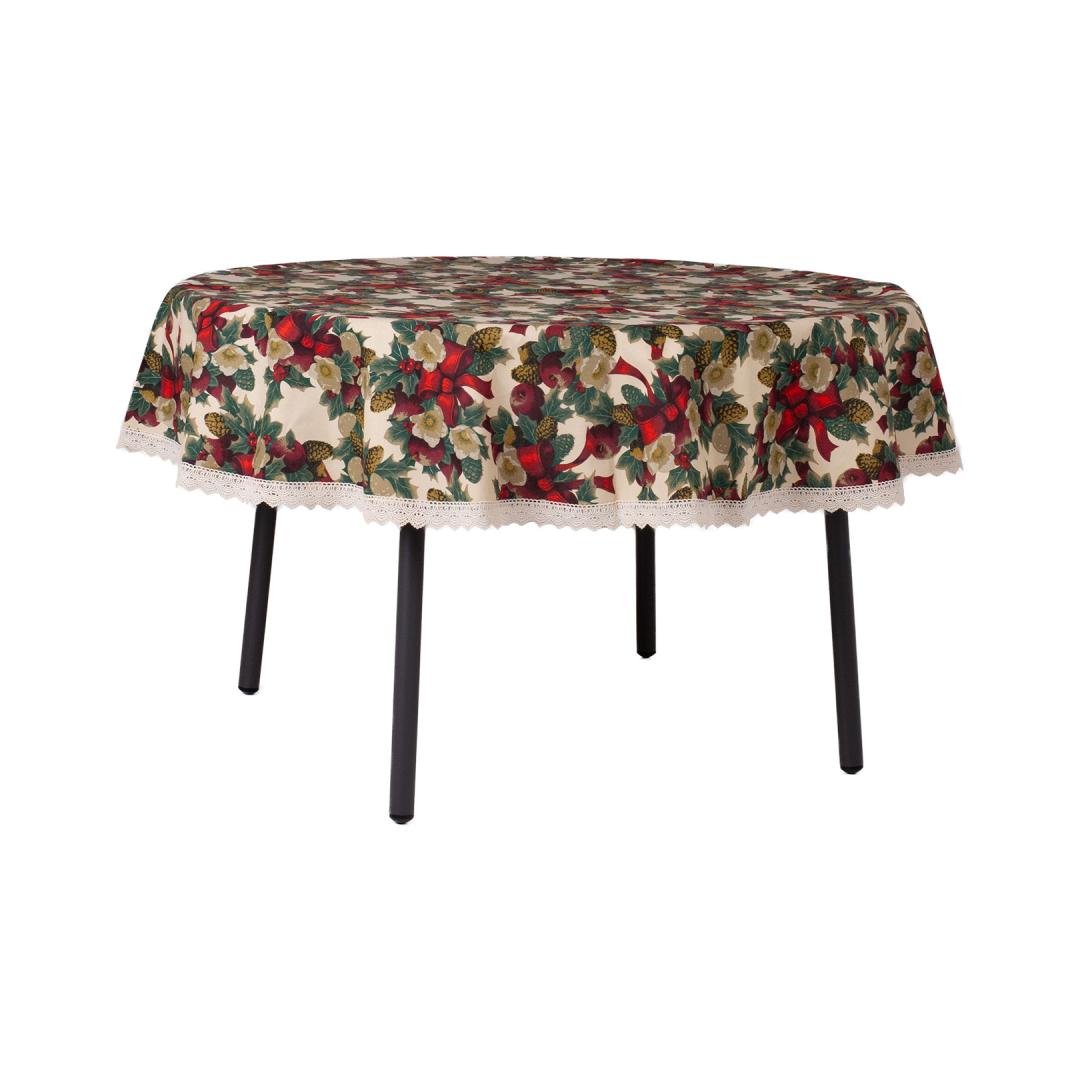 Laudlina WINTER FLOWERS pitsiga, D170cm, lindid, 50% polüester, 50% puuvill, kangas 475