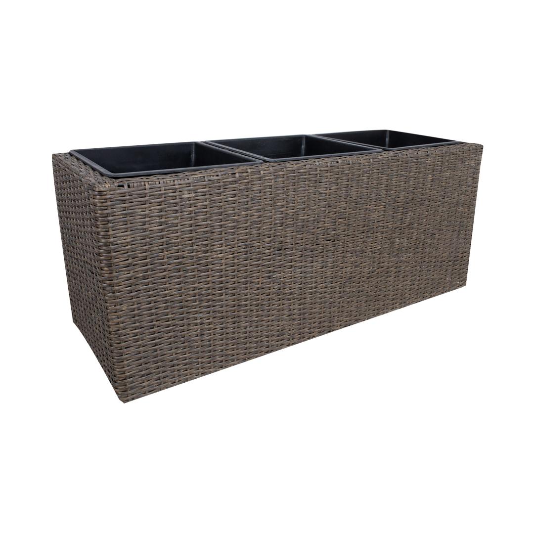 Komplekti kuulub 3 sisepotti. Lillekast WICKER 110x39xH45cm, tumepruun.