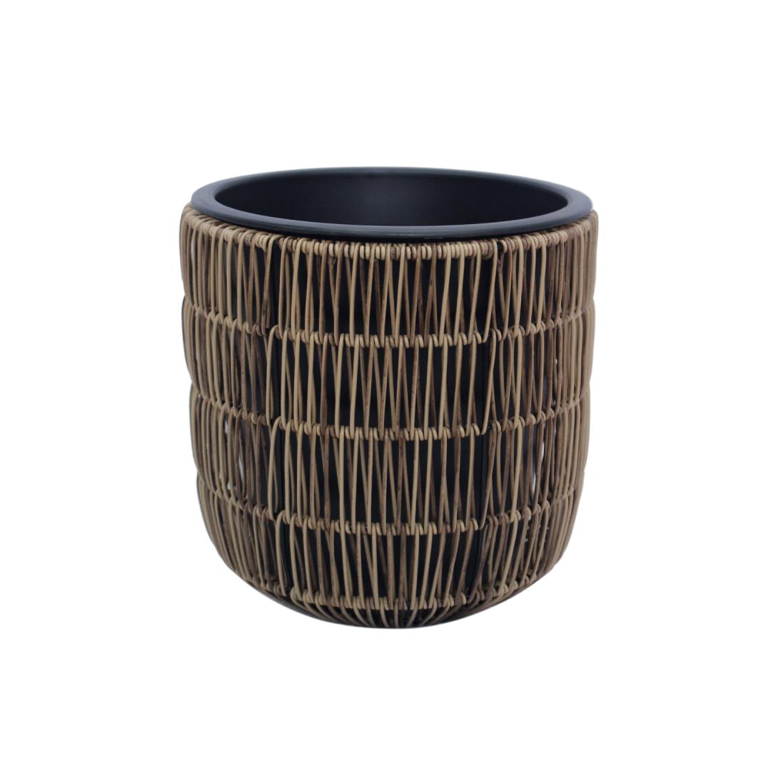 Lillepott WICKER D27xH28cm, helepruun. Lillepoti metallraam on kaetud plastikpunutisega. Plastikust sisepoti mõõdud on D23xH23cm. Sisepott on ilma auguta. Lillepott WICKER D27xH28cm, helepruun. Lillepoti metallraam on kaetud plastikpunutisega. Plastikust sisepoti mõõdud on D23xH23cm. Sisepott on ilma auguta.